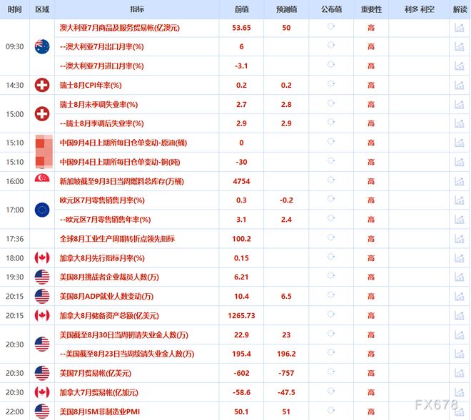 美国参议院金融委员会就提名米兰担任美联储理事举行听证会、美联储威廉姆斯在纽约经济俱乐部发表讲话。 股市 纳斯达克指数周三上涨1%,标普500指数亦收高,受助于谷歌母公司Alphabet股价飙升,之前一名美国法官作出了反对分拆该公司的裁决,以及美联储本月可能降息的乐观预期。道琼斯工业指数小幅收低,波音股价下跌2.1%。Alphabet和苹果是推动标普500指数和纳指上涨的主要动力。Alphabet大涨9.1%,此前一位美国法官裁决,允许谷歌继续掌控Chrome浏览器和Android操作系统,但禁止其与设备制造商和浏览器开发商签订某些排他性协议。 苹果上涨3.8%,因谷歌被允许继续向苹果等合作伙伴支付费用,以使用其搜索引擎。 Longbow 资产管理驻俄克拉荷马州塔尔萨的首席执行官Jake Dollarhide表示, “谷歌和苹果获得了一条生路,他们赢得了这场豪赌,法院的裁决巩固了它们的声誉。” 与此同时,多位美联储官员表示,劳动力市场担忧仍是他们支持降息的主要理由。美联储理事沃勒表示,他认为联储应在下次会议上降息。亚特兰大联储总裁博斯蒂克(Raphael Bostic)也重申了他支持降息的立场,但未说明具体时间。稍早公布的数据显示,美国7月职位空缺减少,表明劳动力市场正在走软。 道琼斯工业指数下跌0.05%,报45271.23点;标普500指数上涨0.51%,报6448.26点;纳斯达克指数上涨1.03%,报21497.73点。 尽管9月历来是美股表现较弱的月份,但Spartan Capital Securities首席市场经济学家Peter Cardillo表示,由于市场普遍预期美联储将降息,本月的市场表现可能不会像往年那样艰难。 根据芝商所(CME Group)的FedWatch工具,美国利率期货走势显示,目前市场预计美联储在9月17日结束的政策会议上降息25个基点的可能性高达96%。投资者仍在关注将于周五公布的月度就业报告。 个股方面,梅西百货大涨20.7%,之前该公司上调全年业绩预期;折扣零售商Dollar Tree重挫8.4%,因发布的本季度利润预测低于市场预期,预计关税将推高成本。随着第二季度财报季接近尾声,投资者正密切关注第三季度业绩预期以及特朗普政府关税政策可能带来的影响。 金市 金价周三延续创纪录涨势,因美国疲软就业数据公布后,市场增强了对美联储本月晚些时候降息的预期,而挥之不去的全球不确定性使避险需求保持强劲。现货金上涨 1.2%,至每盎司 3576.59 美元,盘中触及3578.50美元的历史高点。美国期金上涨 1.2%,报3635.50 美元。