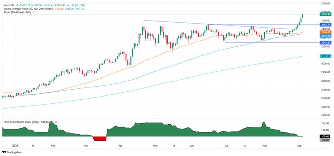 24K99讯 现货黄金周三(9月3日)大幅攀升,延续近日的破纪录涨势并再度刷新高位,主要原因是最新就业数据强化美联储本月降息的可能性,而持续存在的全球不确定性,也持续带动避险需求。 现货黄金周三收盘大涨25.68美元,报3559.03美元/盎司;美国职位空缺数据出炉后,金价一度触及3578.59美元/盎司,创下纪录新高。 美国职位空缺数据远不及预期 美国周三公布,7月职位空缺降幅比市场预期大,且企业招募依然低迷,这与近期劳动力市场放缓的趋势相吻合。 美国劳工部劳工统计局周三发布的职位空缺与劳动力流动调查报告(JOLTS报告)显示,截至7月最后一天,作为衡量劳动力需求指标的职位空缺数量减少17.6万个,降至718.1万个。 路透社此前调查的经济学家曾预测,美国7月职位空缺数量为737.8万个。 JOLTS职位空缺报告是是美联储高度关注的劳动力市场数据。 City Index和FOREX.com市场分析师Fawad Razaqzada表示,在职位空缺数据公布前,金价就已经处于历史高点,由于疲软的数据进一步刺激金价,下一个目标将是3600美元/盎司。 根据芝商所(CME)的“美联储观察工具”,市场认为美联储在9月17日会议上降息25个基点的机率,从数据公布前的接近92%上升到98%。 黄金通常在不确定性时期和低利率环境中表现良好。 美联储新主席的候选人之一、现任理事沃勒周三表示,美联储应该从本月开始下调利率并在未来几个月多次降息,但他对调整的确切步伐持开放态度。 沃勒指出,美联储在9次会议后的降息速度,将取决于经济的下一步发展。 与此同时,美联储理事库克更详细阐述她反对特朗普总统解雇她的理由。特朗普曾多次批评美联储主席鲍威尔今年迟迟不降息。 Heraeus Metals交易员表示:“人们对美联储独立性的担忧日益加剧,进一步削弱了他们对美元计价资产的信任,并转向黄金。” 美国7月份职位空缺数降至10个月低点,提振对美联储本月降息的预期,美元周三下跌。追踪美元兑六种主要货币的美元指数(DXY)下跌0.24%,至98.16。 (截图来源:彭博社) Klarity FX主管Amo Sahota表示:“职位空缺数据显示职位进一步缩减,让美联储在劳动市场面向上有更多确信。我们没有看到汇市大幅波动,但值得注意的是,隔夜指数交换市场现在已经将9月美联储降息的机率定价到95%。” 等待更多美国就业数据 投资者注意力转向周四将公布的美国初请失业金人数和ADP就业数据,以及周五更受各界关注的非农就业报告。非农报告将让美联储政策制定者了解劳动力市场的最新情况。 市场预计8月非农就业人数增加7.5万人,7月为增加7.3万人。市场还预测,8月失业率将从7月的4.2%升至4.3%。 Moneycorp北美结构业务主管Eugene Epstein指出,随着美联储聚焦于就业市场,如果数据持续显示劳动市场恶化,美元将继续大幅走弱。 Epstein补充道:“综合美联储主席鲍威尔在杰克逊霍尔就业市场上的鸽派立场、之前疲弱的非农数据,以及周三的 JOLTS数据疲弱,再加上若周五的就业报告也疲弱,那就形成一个强烈的鸽派氛围。尤其在当前美国政府与美联储之间的政治环境下,几乎看不到其他选项。” Zaner Metals副总裁兼高级金属策略师Peter Grant说:“金价仍有上涨空间,短期至中期目标位约为3600美元/盎司至3800美元/盎司,而突破形态暗示,到明年第一季度尾声,金价可能达到4000美元/盎司。” 如何交易黄金? FXStreet分析师Christian Borjon Valencia指出,因疲弱的美国职位空缺数据提振美联储降息押注,黄金价格周三延续涨势,突破3550美元/盎司。 Valencia预计,金价近期有望挑战3600美元/盎司。然而,相对强弱指数(RSI)转向超买,收于80的极端读数,表明黄金可能在短期内盘整。 上行方面,Valencia表示,交易者目前目标是挑战3578美元/盎司的历史高点。如果突破该位,下一个目标将是3600美元/盎司。如果交易员推动金价突破3600美元/盎司,金价的上升趋势可能会继续。 (现货黄金日线图 来源:FXStreet) 另一方面,Valencia补充道,相反,若金价跌破3550美元/盎司,卖家将瞄准3500美元/盎司,接下来是8月29日高点3454美元/盎司,然后下滑至3400美元/盎司。 |