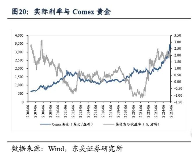 9月1日,美国纽交所黄金价格飙升至逾四个月高点,盘中突破3500美元/盎司的整数大关口。 9月2日,美黄金价格进一步上涨,最高触及3578美元/盎司。不仅突破前期新高,也创下了黄金价格有数据以来的新高。 为什么偏偏在这个时候,黄金能够涨向天际? 因为,当下处于美联储货币政策的关键时刻。 美联储的货币政策动向,一直以来都是金融市场的风向标,而美联储降息预期强烈,逻辑上对黄金价格的影响也是举足轻重。 根据CME FedWatch工具的数据,9月货币市场预计美联储本月降息25个基点的概率约为 90%,甚至到 2026 年秋季累计降息约100个基点的可能性也非常高。 这种强烈的降息预期并非空穴来风,而是有着数据的支撑。 旧金山联储主席戴利近期暗示,美联储将加快降息政策。她强调了经济放缓的风险,使得交易员们对之前略高于预期的核心PCE通胀数据选择性忽略。 戴利表态之后,市场对宽松政策的乐观情绪迅速升温,资金开始推高黄金价格走高。 此外,高盛与花旗均认为若数据进一步恶化甚至可能激进降息50基点。逻辑在于,就业数据显示经济疲软迹象加剧,为了刺激经济,美联储的回应很可能会超出市场预期。 所以结论就是,美国降息预期越强烈,黄金价格上涨动力越充沛。 怎么理解这个逻辑呢? 从三方面来进行解释,分别是实际利率、美元贬值、资产比价。 首先,第一个方面来进行解释。黄金的价格往往和实际利率呈现出相反的关系。 市场的实际利率往下走低的时候,资金获得的利息收益往往很难跑赢通胀,这时资金自然倾向于具有避险属性的黄金。 我们看到下图黄金在过去20年里,每次都是在实际利率下行的时候快速上涨,比如2006年-2012年,2018年-2021年,比如现在-将来。 而每次实际利率往上走高的时候,黄金往往是在下跌周期。比如2012年-2018年,比如2021年-2022年。 其中,2022年-2025年出现一些意外,就是俄乌、以加地缘冲突导致黄金逆着高实际利率上涨。