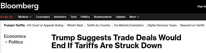 FX168财经报社(亚太)讯 美国彭博社周三(9月3日)报道称,美国总统特朗普(Donald Trump)暗示,如果美国司法系统最终裁定他的全球关税非法,那么与欧盟、日本和韩国等经济体的贸易协定将被取消。 ![]() (截图来源:彭博社) 特朗普周三表示,这些关税使他能够与主要贸易伙伴达成协议,美国可以提高这些国家产品的进口税而不会遭到报复——他表示,这些安排让美国这个世界上最大的经济体“有机会再次变得非常富裕”。 特朗普在椭圆形办公室对记者说:“如果我们打不赢这场官司,我们国家将遭受巨大损失。这些协议都已经达成,我想我们不得不撤销它们。” 特朗普并举例称,欧盟在协议中承诺支付美国“接近1万亿美元”,并称“他们很高兴,协议已经完成”。然而他也承认,若失去法律基础,这些协议可能无法维系。 这是特朗普首次明确暗示,若司法裁决限制其关税权限,可能导致既有贸易协议失效。外界担忧,若相关协议被迫撤销,将冲击数万亿美元的全球贸易流动,加剧市场的不确定性。 特朗普表示,他的政府已向最高法院提出申请,要求快速推翻上诉法院的判决。该判决延续下级法院裁定,认定特朗普动用《国际紧急经济权力法》(IEEPA)征收所谓“对等关税”并不合法。 该法律过去从未被用于加征关税,且并未授予总统单方面设定关税的明文权限。 彭博社指出,该裁决给特朗普关税议程的命运带来新的法律不确定性,可能对数万亿美元的全球贸易造成影响。 特朗普依赖对《国际紧急经济权力法》的广义解释,在不依赖国会的情况下,对特定国家征收全面的关税。 如果没有这些关税,特朗普是否有权单方面与贸易伙伴达成关税协议尚不明确。特朗普曾多次警告称,如果法院裁定他无权自行设定关税水平,将带来可怕的经济后果。 随着美国最高法院是否受理及裁决结果未定,市场正高度关注其对美国贸易政策与国际供应链的影响。 |