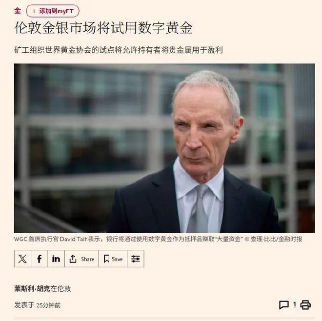今天还有个关于黄金的消息。 世界黄金协会寻求推出数字形式的黄金,将在2026年一季度进行测试。