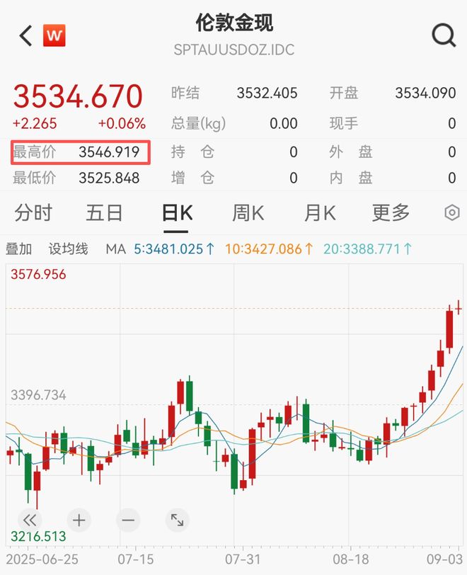 从全球市场来看,9月3日,伦敦金现最高涨近3547美元/盎司,刷新近期高位。