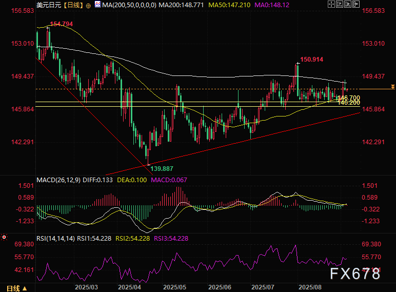 随着美联储降息预期被市场消化且美国经济数据风险隐现,周四(9月4日)美元兑日元持续在147.79至148.19区间内震荡,等待突破动能,美元兑日元未能有效突破200日移动平均线(148.78),促使市场密切关注该货币对重新下行的可能性。 ![]() 美元兑日元未能站稳关键技术水平上方后再度大幅反转,看跌信号逐渐显现,而此时市场正为一系列关键美国数据的公布做准备。 尽管动量指标信号不一,但美元情绪脆弱和美联储降息预期升温这样更广泛的宏观背景,表明了震荡交易状况将持续。 冲高回落再现 美元兑日元未能维持对200日均线的突破后,再度上演剧烈看跌反转。周三在已知阻力区域形成的流星线,增加了汇率回调至147.00下方近期横盘区间下轨的可能性——尤其当它构成潜在黄昏之星形态的第二根K线时,技术性回调概率显著提升。 尽管动量指标略转向多头,但无论是RSI(14)还是MACD都未能提供足够强烈的信号来排除空头仓位。 ![]() 下行方面,市场初步支撑位目标看向50日均线(147.21),若有效跌破该支撑位,有望下探近期低点146.70甚至8月低点146.20。 上行方面,200日均线仍构成强阻力,需有效突破并持稳于200日均线上方,美元兑日元才能逆转看跌倾向。 降息催化剂 从基本面角度看,周四晚间公布的8月ADP就业数据和ISM服务业PMI报告将成为重要影响因素,若出现意外情况,初请失业金数据也会放大波动。 市场对劳动力市场疲软信号保持高度敏感,7月JOLTS调查数据引发的剧烈市场反应便是明证,该报告本身并不特别糟糕,且低回复率导致数据存在巨大误差空间,但即便如此仍足以触发美债和美元的大幅反转。 ![]() 唯一真正的悬念在于:宽松政策究竟是经济疲软所致,还是政治压力推动?无论何种情况,这种背景都令美元难以展开实质性反弹,即便其他货币同样缺乏吸引力,这种困境助推了近期外汇市场反复震荡、缺乏方向的特性,已成为数月来汇市的显著特征。 北京时间11:33,美元兑日元交投于148.18/19。 |