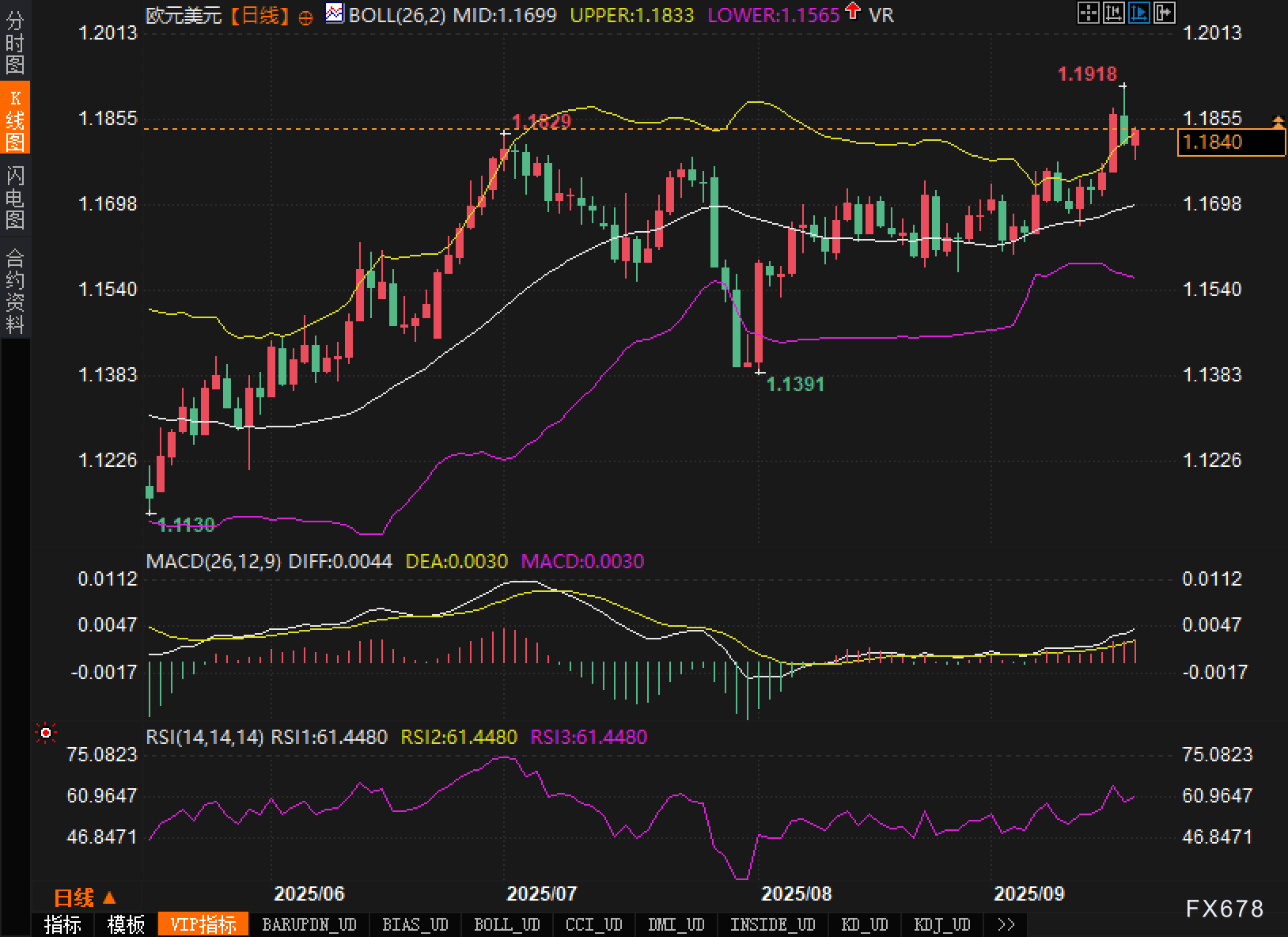 周四(9月18日)欧盘时段,欧元兑美元企稳反弹,重新站上1.1830上方,盘中围绕1.1840一线拉锯。此前美联储如期降息25个基点后,美元在声明与记者会的“相对不那么鸽派”基调中一度回升,但动能很快降温;风险偏好温和修复,使汇价得到支撑。 ![]() 美联储将联邦基金利率目标区间下调25个基点至4.00%-4.25%。点阵图所示,年内路径呈现“风险管理式”宽松倾向:2025年预期再降两次、2026年再降一次,但委员分歧显著,终端路径的不确定性上升。杰罗姆·鲍威尔在会后强调此次为“风险管理性”降息,并警示今年余下时间至2026年通胀仍具粘性,自己“不急于”进一步降息,这一表态短线抬升了美元的名义与实际利差支撑,但并未扭转夜盘以来的回落节奏。 展望近期数据,今晚的美国初请失业金与费城联储制造业指数将为美元提供边际线索。若未现显著意外,市场对“增长放缓+温和通胀”的组合定价大概率延续,从而压制美元的反弹高度。最新宏观读数亦偏向这一叙事:8月美国零售销售环比+0.6%、同比+5.0%,均高于市场预期的+0.2%与+4.1%,且7月数据被上修至环比+0.6%、同比+4.1%,显示消费韧性仍在,但无法改变劳动力市场边际走弱的大背景。美联储经济预测显示,GDP增速今年上调至1.6%、明年1.8%;PCE年末3.0%、至2026年缓至2.6%,高于6月预测;失业率年末4.5%不变,2026年略降至4.4%。利率路径分歧扩大:最鹰派情境指向年末约4.4%,而最低情境(被市场解读为新任委员Stephen Miran的偏好)指向2.9%,这也使“中位数”本身的可参考性下降。 欧元端,欧洲央行副行长德金多斯称当前货币政策“恰当”,容许对通胀目标出现小幅偏离;预计下半年经济增长仍然低迷,但风险“更趋均衡”。同时,欧元区8月HICP环比+0.1%、同比+2.0%,均低于预期(+0.2%、+2.1%);核心通胀环比+0.3%、同比+3.1%,与7月持平。上述组合对欧元的含义是:通胀压力下降为维持宽松敞开空间,但“不过分鸽派”的政策沟通叠加风险偏好回升,短线更倾向于支撑汇价而非压制。综合而言,美元阶段性修正、欧元基本面“中性略偏暖”的叙事,共同推动欧元兑美元回到1.1830上方的震荡偏强结构。 技术面: 从日线图看,当前布林中轨在1.1699,上轨在1.1833,下轨在1.1565。汇价已越过上轨并在其上方缩量横向消化,短线构成“沿上轨走高”形态,显示上行趋势延续与波动率扩张同步出现。 ![]() 结合K线实体与上影线特征,当前更多体现为突破后的回测-整理:若回踩,上轨1.1833与1.1860将形成“阻力转支撑/支撑转阻力”的来回确认;若跌回带内,则布林中轨1.1699为第一道支撑,下方依次关注1.1565以及前低1.1391。整体而言,趋势维持上升通道,短线注意“假突破-真回测”的节奏切换风险。 后市展望: 上行情景(多头倾向):若汇价持续守稳于布林上轨1.1833之上,并在回测中显示“量能前导”特征,则有望再度测试1.1918高点;届时若美国初请弱、费城联储走软,且后续通胀月率与薪资增速延续降温,美元阶段性反弹空间受限,欧元兑美元存续“沿上轨慢牛”的概率。策略上,关注沿上轨的“趋势-回撤-再上行”的典型节奏,避免在指标接近超买区间时追高,以免遭短线挤压。 下行情景(空头倾向):若汇价回落并重新跌回1.1833下方,且1.1860未能转化为有效支撑,则意味着“上轨外沿运行”告一段落,价格将向带内均值回归,首先观察1.1780的盘中回踩痕迹能否提供缓冲;若跌破,则1.1699的布林中轨是更关键的多空分水岭。进一步走弱时,1.1565为结构性支撑,失守后市场将重新检验1.1391一带的低位。触发该情景的催化多来自“数据-政策的反向组合”:美国就业或通胀再现韧性、美联储口径再偏强硬,则美元的避险与利差属性会阶段性回归。 |