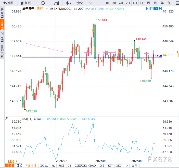 美联储25个基点的降息力度不及市场预期的鸽派,美元指数连续三个交易日持涨势。市场此前预期美联储将采取危机时期常见的大幅降息举措,预先建立头寸,但鲍威尔反对降息50个基点令他们措手不及。 ![]() 一位日本央行前官员认为,即使超鸽派的鹰野宁北赢得大选,10月加息的可能性也很大。企业利润强劲和工资稳定上涨被视为日本央行在第四季度采取行动的充分理由。 然而,由于没有“消息人士”在此次会议前向媒体透露线索,日本央行现在似乎不太可能发出行动信号,这可能使日元顺应近期势头进一步走弱——这种情况将继续支撑美元兑日元和欧元兑日元的多头。 日本央行决议前美元兑日元和欧元兑日元技术展望 美元兑日元技术分析 美元的反弹叠加市场对日本央行加息预期低迷,支撑着美元兑日元未能在近日实质性跌破区间。周三的下影线揭示了假跌破现象,汇价在7月20日低点(145.76)附近出现了剧烈反转。 美元兑日元的动能指标明确指向区间内上行,且日线收于200日指数移动均线(EMA,147.90)之上。一小时图表中可见明显的定向上涨趋势。 ![]() 汇价有望上探区间顶部,或可能重新测试200日指数移动均线(147.90)。多头可关注汇价回撤至月线枢轴点(147.50)的机会,并将200日简单移动均线(SMA,148.59)附近的月线S1枢轴点作为目标位。 ![]() 欧元兑日元技术分析 欧元兑日元强势突破,目前已升至2025年7月以来的最高水平,现报174.44,这一看涨突破为重新测试2025年高点开辟了道路。 若日线时间框架出现回调,关键支撑位包括月线S1枢轴点173.30、20日指数移动均线173.03,以及8月低点形成的上升趋势线。基于当前动能,重新测试甚至突破2025年高点仍是欧元多头可能实现的目标。 近期阻力位于174.75的月线R2枢轴点,这些位置可能暂时抑制上行势头并引发技术性回调。 ![]() 北京时间9:16,美元兑日元交投于148.05/06。 |
