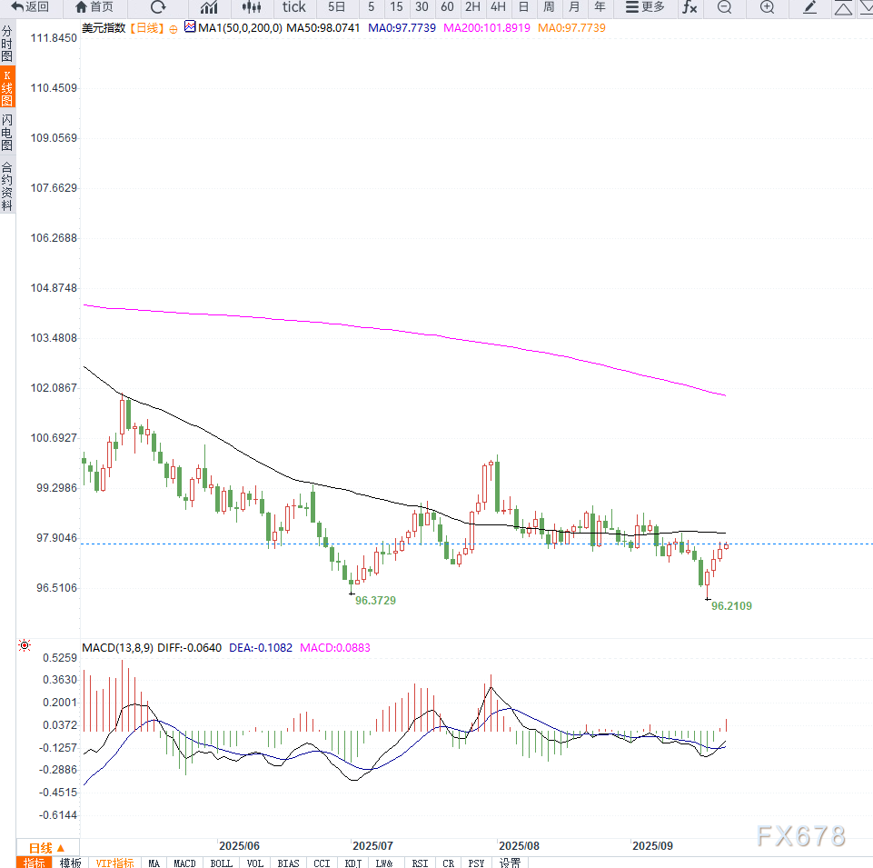 —美元指数(DXY)在周一亚洲时段上涨至97.80附近,延续近期反弹。 ![]() 美联储理事Miran在9月会议中投票支持更大幅度降息(50个基点),并强调其投票决定独立,不受外部压力影响。 他将在周一晚些时候发表演讲,详细阐述自己的立场。 投资者将密切关注本周美联储官员的系列讲话(Fedspeak),这可能成为美元短期走势的催化剂。 澳大利亚联邦银行外汇主管Joseph Capurso表示:“市场最关注的演讲是Miran的发言,因为投资者想了解他对美联储独立性及总统可能影响的看法。” 日线图显示,美元指数在97.50附近获得支撑,短期阻力位在98.20,若突破将可能进一步上探98.50。RSI指标位于50附近略偏强,显示多头力量逐步占优。 均线系统短期维持多头排列,但需关注本周Fedspeak可能引发的波动。下方支撑关注97.50与97.20水平,若跌破,可能回调至96.80附近。 ![]() 美元指数短期仍受益于美联储降息后的谨慎政策基调,但潜在波动可能加大。市场对美联储官员讲话及政策独立性的敏感性增强,尤其是Miran的表态可能左右市场情绪。技术上,97.50-98.20区间为关键震荡区间,应关注突破情况,以判断美元指数下一阶段趋势。 |
