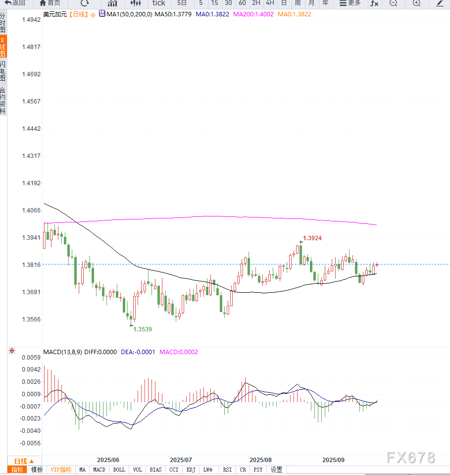 USD/CAD周二亚洲时段延续反弹,升至约1.3830。美元获得支撑,而以大宗商品为基础的加拿大元因油价下跌而承压。 ![]() 此外,伊拉克在OPEC+框架下增加出口,预计9月出口在340—345万桶/日之间。 在美联储政策方面,美元在前一交易日回调后获得支撑。 投资者关注即将公布的美国9月S&P全球PMI初值以及美联储主席鲍威尔的讲话。周一,美联储克利夫兰分行行长Beth Hammack警告称,目前通胀压力仍将持续,货币政策应保持谨慎,以平衡控制通胀与支持就业市场的双重目标。 同时,里士满联储行长Thomas Barkin指出,关税政策通常会提高消费者价格,而企业关注的主要问题是贸易政策的不确定性,而非高利率。 短期内,市场也将关注美国8月PCE物价指数,这一美联储偏好的通胀指标预计将显示价格压力温和。若PCE数据低于预期,可能对美元形成一定支撑,并影响USD/CAD短线波动。 USD/CAD日线图显示,价格在1.3800附近获得支撑,短期维持上涨趋势。若继续上行,阻力位可关注1.3850—1.3880区间;下方支撑则在1.3800与1.3750区域。 整体K线形态偏多头,均线系统显示短期均线上穿中期均线,暗示多头占优。短线回调可能提供逢低买入机会,但若跌破1.3750支撑,可能引发更深回调。 ![]() USD/CAD短期上涨主要受到油价下跌与美元承压因素共同推动。油价持续低迷可能继续压制CAD,而美联储官员强调通胀压力仍存,为美元提供支撑。应重点关注美国PMI初值、PCE数据以及OPEC+产量动向,这些都将成为短期价格波动的关键催化因素。 |