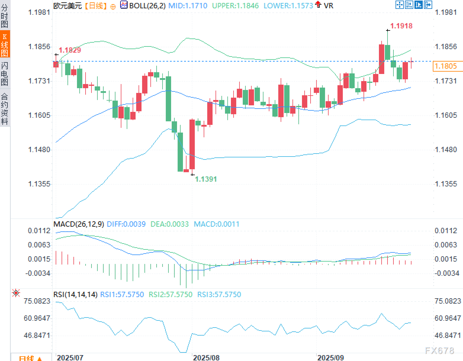 周二(9月23日),欧元兑美元在1.1780一线获支撑后回升,欧洲时段交投于1.18附近。欧洲公布的商业活动数据显示:欧元区服务业走强而制造业回落,为欧元提供一定托底;但在美国9月Markit PMI预览值与美联储主席鲍威尔讲话出炉前,波动率依旧克制,市场选择观望。 ![]() 欧元区:动能分化 欧元区服务业PMI初值升至51.4(预期50.5),而制造业PMI由50.7降至49.5(预期50.9),结构性分化加剧。德国延续同样特征:制造业降至48.5(预期50.0),但服务业升至52.5(前值49.3)。法国更偏疲弱,制造业降至48.1(预期50.2),服务业由49.8进一步降至48.9,凸显该经济体承压。 含义:欧元区总体仍处温和扩张边缘,内部分化压制趋势强度,但服务业韧性让“深度衰退”叙事降温,有利于欧元在低位获得买盘。 美国:关注短周期数据与前瞻沟通 美国今日北美时段将公布9月制造业PMI(预期52,前值53),服务业PMI(预期53.9,前值54.5)。周五还将迎来PCE物价指数。数据前,美元走软:一方面,理事Stephen Miran发表相对鸽派看法,称在移民、税负与关税收入等变化影响下,中性利率应更低,当前政策或偏紧;另一方面,圣路易斯与克利夫兰联储仍担忧通胀,倾向谨慎。 含义:美联储官员分歧扩大+短周期数据可能回落,令美元上行动能受限。但若PMI与鲍威尔口径强于预期,短线仍可能扭转美元疲态。 风险点与传导路径 近期市场将检验美国经济在关税环境偏高背景下的韧性;若美国需求显著降温,美元利差优势收敛→美元回调→欧元兑美元抬升;反之,若美国服务业维持高景气并伴随黏性通胀,减息预期延后→美元反弹→欧元兑美元承压。 技术面: 日线图显示: 1)布林带轻度张口,上轨1.1846 / 中轨1.1710 / 下轨1.1573。汇价自1.1391低点反弹后,于9月冲高至1.1918,随后回撤并在中轨上方重启上行,目前1.1805,距离上轨尚有约40点空间,上轨对短线构成第一阻力。 2)MACD方面,DIFF 0.0039、DEA 0.0033,柱状图维持小幅正值,代表多头动能存在但偏温和,尚未进入趋势性放量阶段。 3)RSI(14)约57.6,处于中性偏强区间,多头占优但未过热;若RSI持续向60—65推进且伴随实体阳线放大,将提升上行突破1.1846的概率。 ![]() 阻力位:1.1846(布林上轨,若有效上破并站稳,汇价可能回测1.1918高点);其上为1.1918(9月高点),为阶段性强阻。 支撑位:1.1800为心理关口与短线枢轴;其下是1.1710(布林中轨/动态支撑),再下看1.1573(布林下轨)。 形态层面:自1.1391以来的上升通道雏形仍在;近两周回撤未跌破中轨,回测—拉起的节奏较清晰。若接下来阳线实体沿上轨行走则指向趋势加速;反之,若跌破1.1710并收于中轨下方,走势将转入箱体震荡甚至短线反转。 市场情绪观察 情绪结构:当前属于“谨慎的多头市场情绪”。欧元的利好来自服务业韧性,但法国产出疲弱与美国数据未定使得追涨意愿受抑。 风险偏好与叙事:若鲍威尔提供更清晰的前瞻指引并被解读为“政策不急于再度宽松”,美元或阶段性提振;但若讲话引导“经济放缓、政策可转向”的预期,欧元将受益于美元回落。简言之,叙事尚未凝聚为单一共识,这也是布林带仅温和张口、RSI未过热的原因。 |