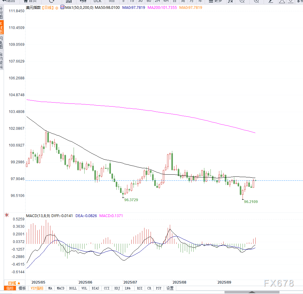 美元指数(DXY)周三强劲上行至98.00附近的两周高点后,周四亚洲时段小幅回落至97.75,日内下跌约0.10%。尽管如此,缺乏后续跟进的抛盘显示,美元空头暂未形成新的主导力量。 ![]() 美元指数在98.00附近遇阻后小幅回落,但整体仍维持反弹格局。日线图显示,DXY已突破前期跌势的38.2%斐波回撤位,技术面偏向多头。 短线关键支撑位在97.50与97.25区域,若失守则可能回落至97.00甚至96.65;上方若能突破98.00关口,则有望进一步上探98.25及98.70区域。整体来看,行情处于震荡偏强阶段,回调或被视为买盘机会。 ![]() 美元指数当前走势呈现基本面与技术面拉锯。基本面上,美联储降息预期压制美元,但鲍威尔的谨慎态度限制了下行空间;技术面上,DXY的反弹尚未破坏中期下行趋势,但短线多头优势明显。 整体来看,97.50-98.00区间是近期关键,突破方向或由美国GDP和PCE数据决定。 |