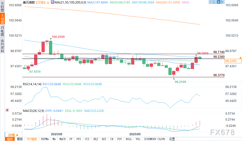 周五(9月26日),8月核心个人消费支出物价指数(核心PCE)数据公布后,尽管通胀黏性仍在且消费者支出超出预期,美元指数(DXY)仍小幅走弱。该指数从日内高点98.605回落,此点位略低于98.635和98.834的双重峰值阻力位,反映出市场在关键技术位附近的犹豫情绪。 ![]() 核心PCE通胀率维持在2.9%——美联储政策下一步走向如何? 8月核心PCE(美联储青睐的通胀指标)环比上涨0.2%,同比上涨2.9%,两项数据均符合预期。整体PCE指数环比上涨0.3%,推动年度通胀率升至2.7%。这些结果与市场预期一致,对美联储当前的利率前景影响有限。 消费者韧性同样引人注目:个人收入环比增长0.4%,个人支出环比激增0.6%,两项数据均超出共识预期0.1个百分点。该数据进一步印证了一个观点:尽管通胀高企且关税相关压力持续,美国消费者的活力依然强劲。 国债收益率趋稳,市场仍预计将再降息两次 数据公布后,债券市场反应平淡。美国10年期国债收益率小幅下跌至4.168%,2年期国债收益率则跌至3.649%。这种温和反应表明,通胀数据已被市场充分消化。重要的是,美国当周初请失业金人数降至21.8万人,远低于道琼斯预测的23.5万人;同时,美国第三季度国内生产总值(GDP)年化增长率被上修至3.8%。 此类数据既凸显了美国经济的韧性,也使美联储未来的政策路径更趋复杂。交易员仍确信美联储将在10月再降息一次,且通过芝商所(CME)美联储观察工具显示,多数交易员预计年底前还将有一次降息。 市场展望:美元多头面临关键阻力位测试 ![]() 只要美联储维持谨慎的宽松立场,且通胀率持续高于目标水平,美元就可能获得支撑。但就目前而言,美元多头或许需要更强劲的数据——或是新的政策信号——才能明确突破阻力位。 北京时间23:23,美元指数报98.226/246,跌幅0.22%。 |