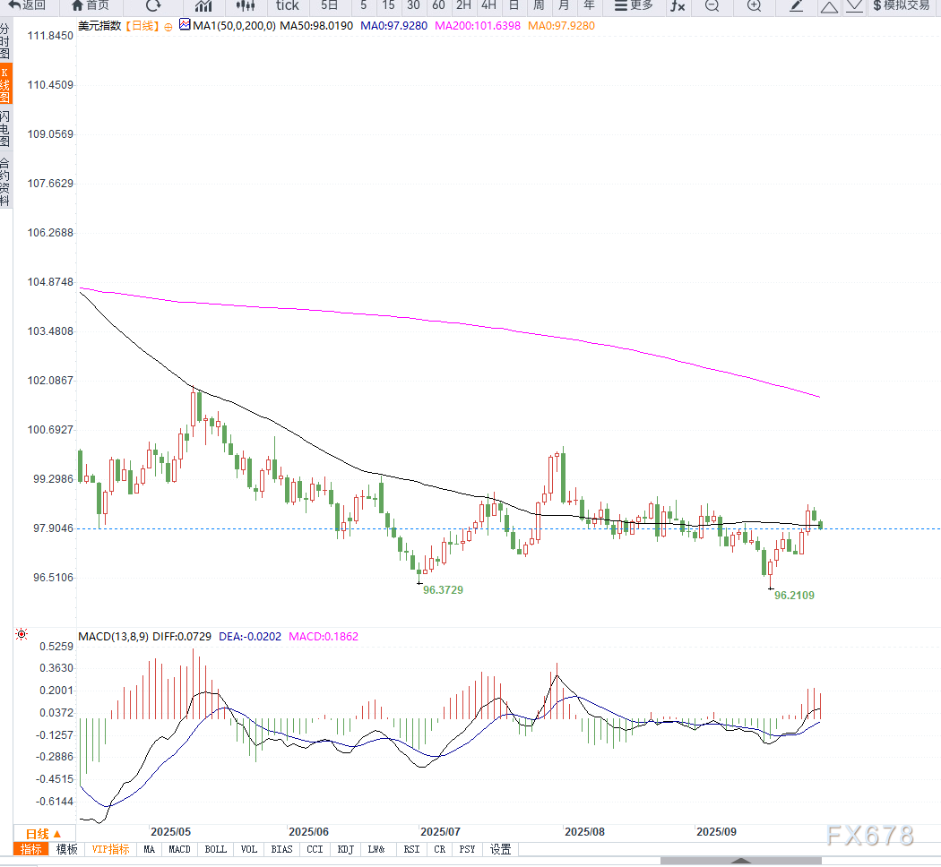 美元指数在亚洲交易时段承压下行,反映出投资者对美国政府潜在关门的担忧。总统特朗普计划于周一与国会民主党和共和党领导人会面,讨论延长政府拨款。 ![]() 尽管通胀仍高于美联储2%的目标,但数据未改变市场对年内两次降息的预期。根据CME FedWatch工具,10月降息概率接近90%,12月再降息概率约65%。 周一晚间,多位美联储官员将发表讲话,包括理事Christopher Waller、克利夫兰联储主席Beth Hammack、圣路易斯联储主席Alberto Musalem、纽约联储主席John Williams以及亚特兰大联储主席Raphael Bostic。 若官员释放鹰派信号,美元可能得到支撑,限制下行空间;反之,鸽派言论可能进一步打压美元。 从日线图来看,美元指数(DXY)目前在97.95附近承压整理,短期均线呈现走平状态,显示多空力量暂时均衡。RSI指标接近中性水平,动能偏弱,短线难以出现单边突破。 关键支撑位在97.50,如果跌破可能进一步下探97.00附近;上方阻力位在98.50,如突破则有望测试99.00整数关口。整体来看,美元指数短期或维持区间震荡,市场情绪和即将发布的美联储讲话将成为影响价格的重要变量。 ![]() 美元短期走势面临两大变量:一是美国政府关门风险可能加大抛压,二是美联储未来利率路径的不确定性。投资者需关注拨款法案进展及美联储官员讲话内容,以判断美元指数的下一步方向。预计短期美元可能维持区间震荡,关键支撑位在97.50附近,阻力位在98.50。 |