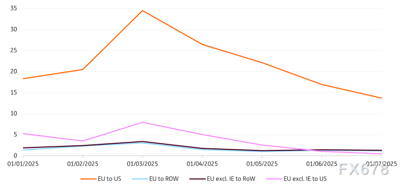 随着欧美框架协议落地、欧元兑美元升值及初期贸易数据显现,特朗普重启关税议程对欧盟的潜在影响越发难以忽视。2025年初的出口前置效应确实支撑了上半年贸易水平,但市场预计随着关税措施发力,欧盟对美出口将逐步放缓,短期将直接拖累欧盟GDP增速0.3个百分点,长期更面临重大增长风险。 ![]() 去年七月达成的欧美贸易协定及后续公布的框架协议,让欧洲生产商获得了更清晰的关税指引。协议规定对不受行业关税影响的商品统一适用15%最惠国税率,而行业性关税则严苛得多——钢铁、铝和铜产品面临50%的惩罚性关税。作为交换,欧盟同意取消工业品关税,承诺在2028年前采购7500亿美元美国能源产品,并推动6000亿美元对美投资。 然而不确定性依然存在:八月底美国将407种产品的铝钢组件纳入50%关税清单,九月初公布普惠关税豁免名单后,特朗普又于9月25日宣布自10月1日起对医药产品征收100%关税。更关键的是,美国最高法院将于11月5日对依据《1977年国际经济紧急权力法》征收关税的合法性作出裁决。 不断调整的关税范围与豁免条款持续增加合规难度。以斯洛文尼亚为例(见图1),因其部分出口产品落入新扩围的铝钢组件关税清单,预计面临45%的关税涨幅。尽管实际有效税率可能较低,但产品金属含量申报的信息负担与标准模糊,本身已构成显著的非关税贸易壁垒。 ![]() 斯洛文尼亚虽属特例,但行业性关税与豁免条款对欧盟成员国的影响差异显著,这反映出各国关税结构与出口构成的本质差异。得益于疫苗相关豁免,爱尔兰面临的关税涨幅相对“温和”,预计约10.5个百分点。根据全球贸易预警数据测算,欧盟整体贸易加权有效关税率将达19.6%,较2024年的1.2%急剧攀升。这18.4个百分点的增幅,显著高于欧洲央行最新宏观经济预测中使用的13.1%,凸显出把握当前关税环境的难度。 展望未来,尽管面临美国国内法律挑战,市场预计关税在可预见时期内将维持高位。关税作为填补财政赤字的重要财源,以及实现各类(甚至超越贸易范畴的)政治目标的工具,仍将是美国政府政策工具箱的核心组成部分。需注意美国政府仍保留着根据其他法律框架重新开征关税的广泛权力(如既往对汽车、钢铁、铝铜产品的做法)。这些法律允许征收临时关税,且国会可无限期延长。考虑到关税带来的巨额财政收入,这些政策很可能贯穿特朗普整个任期。若美方不再升级关税,欧盟实施反制的可能性也微乎其微。 最终导致GDP直接损失0.3% 鉴于欧盟对美国市场的直接经济敞口约占其GDP的1.9%,测算18%的关税水平将在未来两年内拖累欧盟GDP约0.33%。该结果虽与市场此前预测一致,但驱动逻辑已发生变化:原先考虑的25%关税最坏情景并未完全实现,但当时预测伴随的欧元小幅贬值已逆转为年初以来近15%的升值幅度。 尽管欧元15%的升值幅度可观,但其对GDP的影响预计远小于关税冲击。关税变动通常被假定为完全传导至价格,而汇率波动的传导效应往往存在折损。哈佛大学、IMF及美联储经济学家联合研究表明,受美国进口主要以美元计价影响,汇率波动仅约22%会体现在国内价格中。 总体而言,小于预期的关税增幅已被欧元升值相抵消,这使得市场对GDP影响的评估维持不变。 关税效应初显,欧盟出口前景堪忧 当前负面影响究竟显现多少?出口数据显示其影响仍属有限,这主要归因于“抢出口”效应:欧洲出口商在4月1日关税上调前加速发货,尤其是爱尔兰的医药行业表现突出。受此推动,欧盟对美出口在年初激增后已显现疲态。不过截至7月底出口规模仍保持13.8%的同比增幅(剔除爱尔兰后为0.5%,见图2)。 尽管当前数据仍处高位,下行趋势却已明确。市场预计2025年下半年这种放缓态势将加速深化。根据GDP影响模型测算,在其他条件不变情况下,未来两年欧盟对美出口将萎缩近17%。美国市场在欧盟对外出口中的占比已从2024年的20%升至今年7月的22%,若预测成真,该比例可能回落至17.2%左右。如此急剧的萎缩——特别是在更易受关税冲击的行业和成员国——将成为关税开始发力的明确信号。 ![]() 尽管0.3%的GDP降幅看似温和,但美国关税通过间接渠道产生的经济冲击可能被急剧放大。关税政策打乱生产秩序,不仅可能引发失业潮、抑制家庭消费与投资意愿,更将促使企业在不确定性加剧背景下重新评估长期项目规划。 这些影响绝非局限于欧美双边贸易。对加拿大、墨西哥等国加征的关税正在扭曲全球贸易格局,削弱对欧洲出口产品的需求,最终反噬欧盟本土产出。全球价值链更将强化这一传导机制——当那些经第三国加工后输往美国的欧洲中间品需求萎缩时,欧盟制造业将遭受连环冲击。 基于模型的测算揭示了这些关联效应的规模:基尔研究所贸易模型显示,计入加拿大(-4.3%)与墨西哥(-5.7%)的GDP溢出效应后,欧盟短期GDP损失将扩大至-0.5%。欧洲央行的多国模型同样表明,通过全球生产网络传播的冲击将在2025-2027年间累计拉低欧元区GDP增速0.7个百分点。 长期影响尤为可虑 尽管我们对短期乘数效应的完全显现持审慎态度,但其无疑加剧了长期风险。根据预估,关税对欧盟GDP的直接冲击长期可能升至0.86%,若信心与投资持续恶化,下行空间还将进一步扩大。 面对如此严峻局面,欧盟必须多管齐下化解风险:无论是深化内部市场整合,还是加速与第三方达成贸易协定,都需尽快开辟替代性贸易通道。近期敲定的欧盟-南共市