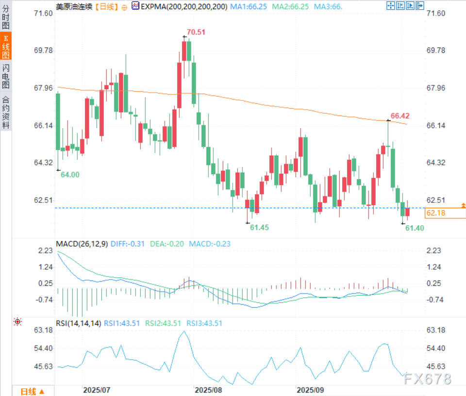美国原油基准西德克萨斯中质原油(WTI)周四(10月2日)上涨,结束连续四个交易日的跌势,目前交投于每桶62.20美元附近,弹离16周低点(61.40美元),因对俄罗斯原油的限制有可能收紧,但对OPEC+下月增产导致供应增加的预期抑制了涨幅。布伦特原油目前上涨0.65%,至每桶65.78美元附近。 ![]() 日产证券旗下Nissan Securities Investment首席策略师Hiroyuki Kikukawa表示:“在美原油接近60美元支撑位时出现了买兴,而地缘政治风险加剧和对俄罗斯原油限制收紧的猜测也为美原油提供了支撑。” 七国集团财长周三表示,将采取联合措施,通过限制那些继续增加购买俄罗斯石油和协助规避限制的国家,加大对俄罗斯施压。 华尔街日报周三援引美国官员的话报导称,美国将向乌克兰提供远程导弹打击俄罗斯能源基础设施,特朗普政府正在权衡向乌克兰提供强力武器,使更多俄罗斯境内的目标置于射程之内。 Kikukawa称,美国政府关门加剧了人们对全球经济的担忧,OPEC+增产预期也影响了市场情绪,限制了油价涨幅。 特朗普政府周三冻结260亿美元用于民主党势力州的项目资金,兑现了利用政府关门事件针对民主党优先项目进行打击的威胁。 三位知情人士表示,OPEC+可能在周日的会议上决定在11月加快增产步伐,增幅将超过10月的13.7万桶/日,该组织主导国沙特阿拉伯推动重新夺回市场份额。 美国能源信息署(EIA)周三称,在截至9月26日的一周内,原油库存增加180万桶,达到4.165亿桶,市场预期为增加100万桶。汽油库存增加410万桶,馏分油库存增加57.8万桶。 由于美国国会陷入僵局未能就拨款达成协议,美国联邦政府于周三停摆。政府机构警告称,此举将导致备受关注的9月就业报告等重要数据暂停发布。 技术分析 从技术面看,上周油价在200日指数移动均线(66.25)附近受阻后回落,可视为触发本轮看跌走势的关键信号。周三油价一度触及16周低点(61.40),而后回升,构成反弹趋势的开始。 14日相对强弱指数(RSI)处于中线下方,MACD震荡指标仍处负值区域,印证了空头仍强势,表明原油价格短期上行阻力不容小觑。 下行方面,若油价跌破61.50-61.30美元区域(即周三触及的数月低点附近),可能为进一步下跌打开空间。随后原油价格若跌破61.00美元关口,或将下探60.40-60.30美元的中间支撑位,并最终测试5月末波动低点60.00美元心理关口。 上行方面,任何突破62.50美元的修复尝试,预计将在62.65-62.70美元区域面临初步阻力。若能持续突破该水平,可能引发空头回补行情,推动原油价格突破63.00美元整数关口,向上挑战63.60-63.65美元阻力区域,进而冲击64.00-64.25美元区域。 ![]() 北京时间10:59,美原油连续现报62.20美元/桶。 |