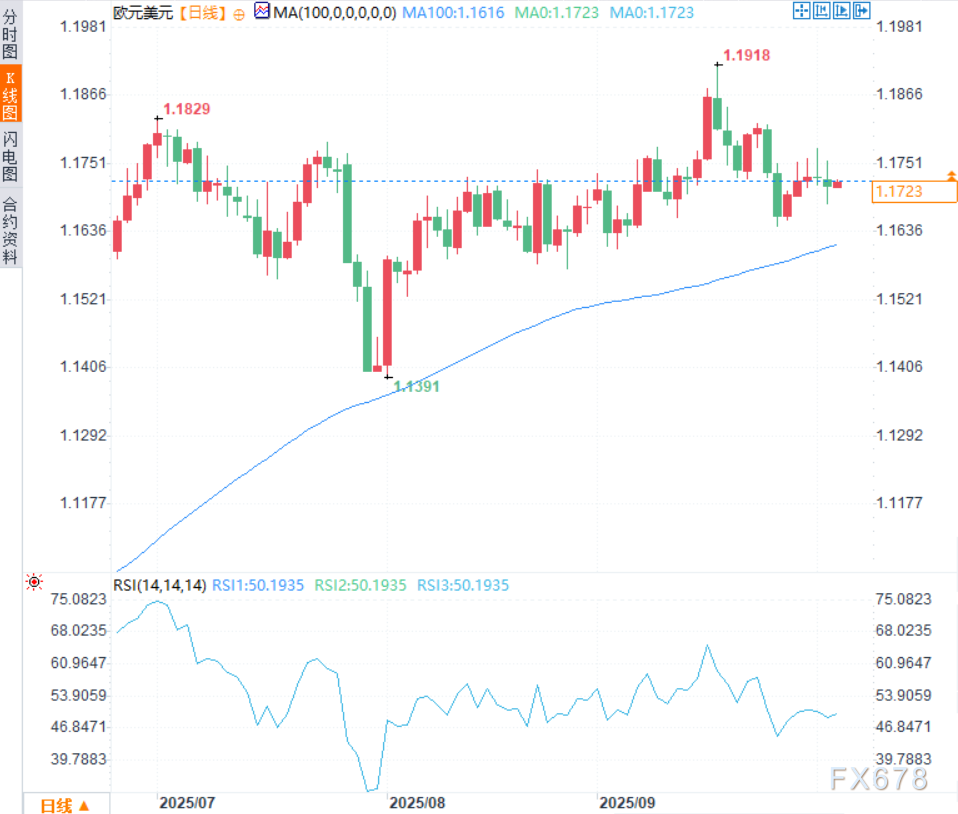 欧元兑美元已连续两个交易日收跌,短线跌幅近0.6%,美元占据优势。周五(10月3日)亚市早盘时段,该货币对呈现中性走势,目前交投于1.1720附近,主要源于美国政治不确定性迫使市场陷入横盘整理格局,难以形成连贯的方向性走势。只要这种局面持续,未来几个交易日中性行情可能继续主导市场。 ![]() 美国政府停摆已进入第三天,解决方案与持续时间仍不明朗。非必要政府职能陷入停滞,数十万联邦雇员处于无薪休假状态,而白宫与参议院均未释放本周内化解僵局的明确信号。 此次事件折射出政治信心的恶化,并引发政府职能的制度性风险。若长期持续,关键经济部门停摆可能使美国GDP蒙受数百亿美元损失。尽管美元迄今未显著承压,但若如上次停摆般延续逾月,恐将严重动摇市场对美元的信心。 需特别关注的是,受停摆影响的机构包括就业数据发布部门,这意味着原定于周五晚些时候公布的非农就业报告可能延期。缺乏关键经济指标支撑,美联储决策依据将受限,市场对年内再度降息两次的预期随之强化。利率下行将削弱美元资产吸引力,政府停摆可能在中长期间接导致美元走软。 综上,虽然美元尚未因政治风险出现剧烈下跌,但若停摆持续数周,将因制度稳定性缺失及经济数据断供加剧市场对美元的信任危机。届时欧元或有望在短期内获得更持续的买盘支撑。 欧洲央行政策取向 本周欧洲央行释放重要信号。行长拉加德称欧元区通胀风险可控,并强调在美国关税压力下经济仍保持韧性。但她也透露,央行在后续决策中大概率维持中性立场,以防通胀再度攀升。 最新数据显示,9月年化通胀率已从8月的2.0%升至2.2%,证实物价回升趋势。 ![]() ![]() 技术展望:欧元兑美元持稳于1.1720附近等待新催化剂 过去四个交易日中,欧元兑美元始终稳守1.1700关口上方,但始终未能突破1.1750阻力位——该关口的突破将为进一步上涨打开空间。 相对强弱指数(RSI)在50中性线附近走平,显示市场缺乏明确方向。 上行方面,若汇价有效突破1.1740,后续阻力位将上看1.1800整数关口,继而挑战年内高点1.1918。 下行方面,若失守1.1700支撑,则可能下探1.1650区间,继而考验100日移动均线所在的1.1616关键支撑。 ![]() 北京时间8:44,欧元兑美元交投于1.1720/21。 |