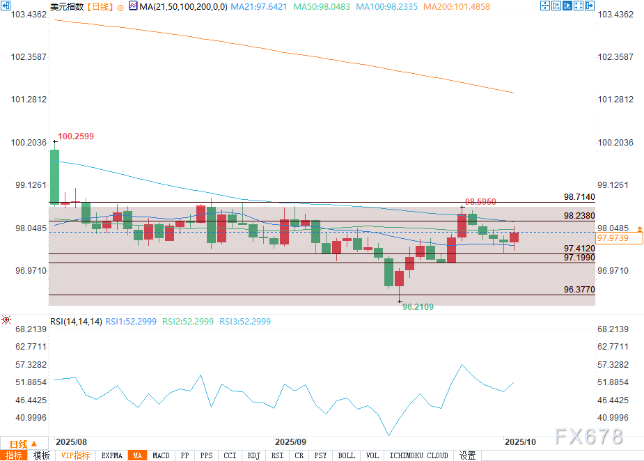 周四(10月2日)美盘时段,美元指数(DXY)承压下行,跌至97.522的近一周低点。这一走势源于市场消化美国疲软就业数据及持续政府停摆的影响。然而,早盘中段美元开启回升走势,尽管反弹背后并无明确基本面驱动因素,指数仍短暂转涨。 ![]() 在连续四个交易日下跌后,美元起初因ADP就业报告表现惨淡进一步下滑。该报告显示,上月私营部门就业人数减少3.2万人,而市场此前预期为增加5万人。这一数据不及预期,加剧了市场对美联储今年可能再降息两次的看法。 政府停摆令美联储前景复杂化 由于政府停摆导致联邦数据发布中断,市场目前无法获取关键美国经济数据。这迫使交易员更多依赖ADP、挑战者就业报告等民间指标,这些指标对市场的影响较往常更为显著。原定于周五发布、备受关注的非农就业报告将无法如期公布。政治动态进一步加剧了投资者的不确定性。特朗普政府冻结了针对民主党领导州的260亿美元资金。交易员同时在关注与美联储相关的法律诉讼,包括最高法院决定审理特朗普试图罢免美联储理事莉萨·库克(Lisa Cook)的相关案件。 技术面支撑稳固,50日均线附近动能积聚 ![]() 尽管美元指数开盘走弱,但该指数连续两个交易日在97.412位置获得技术面支撑,97.199的震荡底部也为其提供了助力。尾盘的回升推动指数向关键阻力位——50日均线(98.048)靠近。若指数收盘能突破该点位,可能打开向98.238-98.714回调区间上行的空间,上周涨势曾在98.605位置遇阻。美元对避险货币日元的跌幅最大,下跌0.3%至146.69,反映出交易员的避险情绪。受欧元区通胀数据走强支撑,欧元对美元小幅上涨0.18%,报1.1751。 美国国债波动平缓,市场信号偏谨慎 由于市场正评估数据真空带来的影响,美国国债收益率变动不大。10年期国债收益率维持在4.11%附近,2年期国债收益率微升至3.565%。这一走势表明,尽管政府停摆且就业数据疲软,市场对利率的预期并未出现重大转变。 市场展望:除非突破技术位,否则美元仍承压 尽管周四的反弹令许多人意外,但缺乏明确催化因素使得美元走势仍存不确定性。除非美元指数能明确突破50日均线(98.048),否则疲软数据及美联储指引停滞带来的压力可能会限制美元涨势。在官方数据缺失的情况下,交易员仍将重点关注替代数据及美联储官员讲话。 |