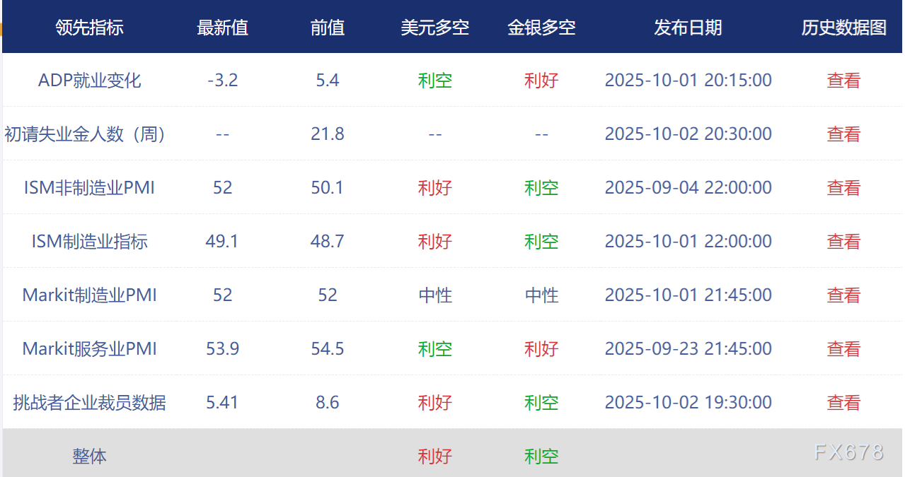 【下图8:美国“非农领先指标”的最新情况,其中,原定于周四10月2日发布的美国初请失业金人数未能如期发布,也是收美国政府停摆事件的影响(更多详见汇通财经非农专题)。