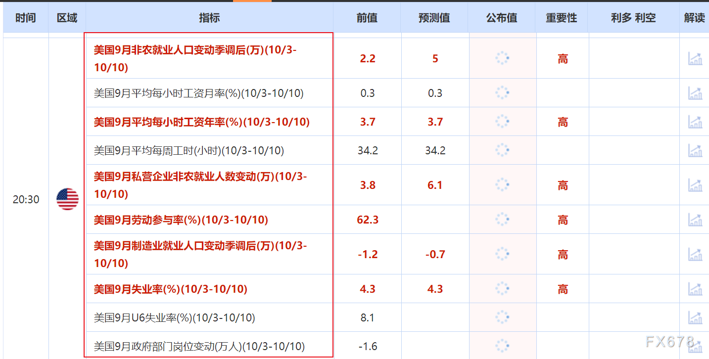 【下图7:为您展现非农及其分项在财经日历页面的预报详情(财历上暂按10月3日20:30至10月10日20:30进行预报):