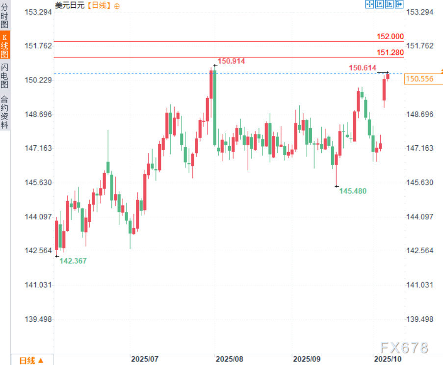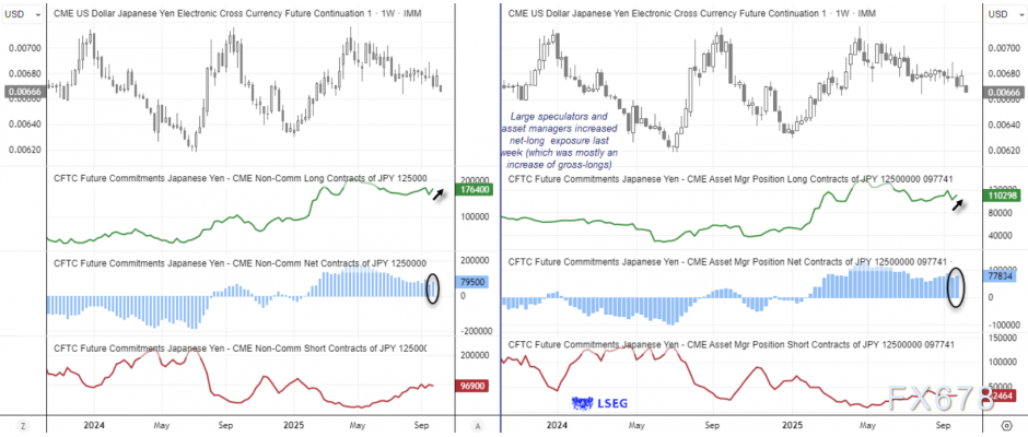 周二(10月7日),美元/日元延续涨势,一度达150.61的两个月高点。因东京政治变动导致日元大幅抛售。有报道称支持经济刺激的候选人和日本央行加息的公开批评者高市早苗有望成为日本首位女首相,市场对此作出反应,引发日元普遍下跌,并重新激发对利差交易的兴趣。 ![]() 周一,日元对主要货币全线大幅下挫,原因是一位支持宽松刺激政策的候选人有望成为日本下一任首相。高市一直是日本央行加息的公开批评者。受此影响,日本央行近期加息25个基点的概率从约68%降至41%,引发债券市场暴涨,收益率承压下行,导致日元全面走软。周二延续这种趋势。 不过,一位接近高市的顾问暗示,她可能仍会容忍最后一次25个基点的加息。一位日本央行前官员近期也指出,即使她正式就职,对央行政策的影响力可能有限。虽然她的胜选究竟意味着日本央行紧缩周期的终结还是仅会放缓步伐尚无定论,但该消息已足以促使众多日元多头重新评估持仓风险。 随着利差交易重获市场青睐,商品货币领涨非美货币:澳元/日元、加元/日元和新西兰元/日元周一收盘均上涨约2%;美元/日元攀升1.9%,最终收于150关口上方;英镑/日元突破200大关,创15个月新高;欧元/日元升至1991年以来最高水平;瑞郎/日元与日经指数双双飙升至历史新高,均创下自4月以来最大单日涨幅。 日元期货持仓(JPY/USD)——COT交易员持仓报告周度分析 最新发布的交易员持仓报告显示,提前布局的多头遭遇了意外打击。截至周二,大型投机者与资产管理机构的净多头头寸当周合计增加2.56万手。其中新增多头仓位占据主导:大型投机者的日元多头总持仓增长9%,资产管理机构增长8%,合计新增2.25万手多头合约。大型投机者同时还削减了3.5%的空头总持仓(减少3600手)。 这些提前布局的多头很可能已进行平仓操作,这意味着在明确高市对日本央行的影响力及央行加息能力之前,日元短期内可能面临进一步抛压。 ![]() 美元/日元在上周五收盘价与周一开盘价之间形成的192点跳空缺口,创下自1990年5月以来美元/日元日线图上的最大纪录——巧合的是,当时同样是在150关口附近出现的向下跳空缺口。周一1.9%的涨幅创下九周以来最大单日涨幅,周二延续涨势,日内最高点(150.61)距8月高点(150.91)仅30点之遥。 此番暴涨使得先前市场的看跌预期失效,不过持续上涨的关键仍取决于确认日本新任首相能否影响日本央行的加息路径。 市场还将关注非农就业数据以研判美联储政策前景——若数据疲软可能强化对10月与12月连续降息的预期。但目前而言,回调行情更可能吸引买盘,市场焦点集中于对151.28双顶高位的再度测试。 若有效突破该水平,短期内或将挑战周线第三枢轴点及152整数关口。 ![]() 北京时间8:59,美元/日元交投于150.49/50。 |