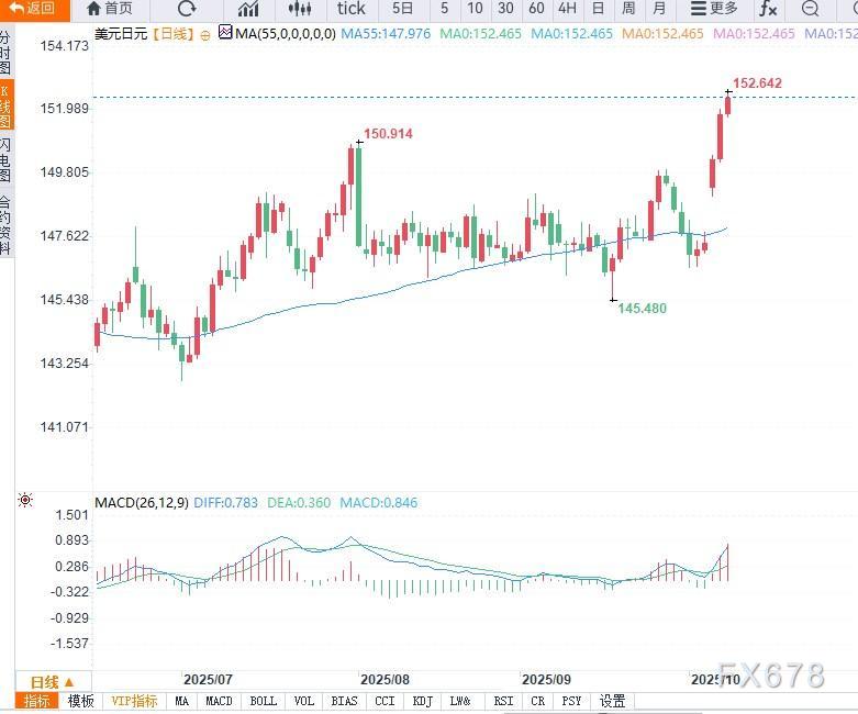 日本新任领导人高市早苗的政策预期倾向扩张性财政,对日元形成负面因素。 ![]() 与此同时,日本家庭支出数据意外上行,显示消费面略有回暖,对BoJ未来加息仍构成背景支撑。 尽管市场普遍预期美联储将在下次会议降息 25 个基点,但美国政府停摆与通胀预期上升使得美元回升对日元构成压力。 此外,日本与美国货币政策预期明显分化:市场押注美联储可能逐步放松,而日本央行可能维持鸽派立场,这增强了美元兑日元(USD/JPY)的上行动力。 从技术结构看,USD/JPY 已经突破多条短期阻力线,并向 152.00–152.50 区间攀升。若能进一步突破该区间,则下一个目标可看向 153.00 区间。 若出现回撤,则首先关注 152.00 作为支撑,再退至 151.00 或 150.00 区域。技术指标如 RSI 目前处于正向但未至极度超买,暗示上行还有余地。 若价格全面突破 150.90 的阻力,将进一步推动涨势延续。USD/JPY 在 2025 年仍维持上涨趋势,其基于 50 周均线的位置给出中长期支撑。 ![]() 当前 USD/JPY 的上升趋势主要受日本政策预期转向与美元强势双重推动。 若高市政府正式实施宽松财政、BoJ短期继续保持观望,加之美元若因美联储延迟降息或美国财政僵局发酵而表现坚挺,日元的下行压力可能更显著。 但需警惕:若美元因美国国内风险增加而走弱,或日本经济数据严重恶化,USD/JPY 上行可能遭遇阻力。 若汇价突破 153.0 区间,可视为多头确认信号;反之,若跌破 150-151 区间,中期走势或需重新评估。 |