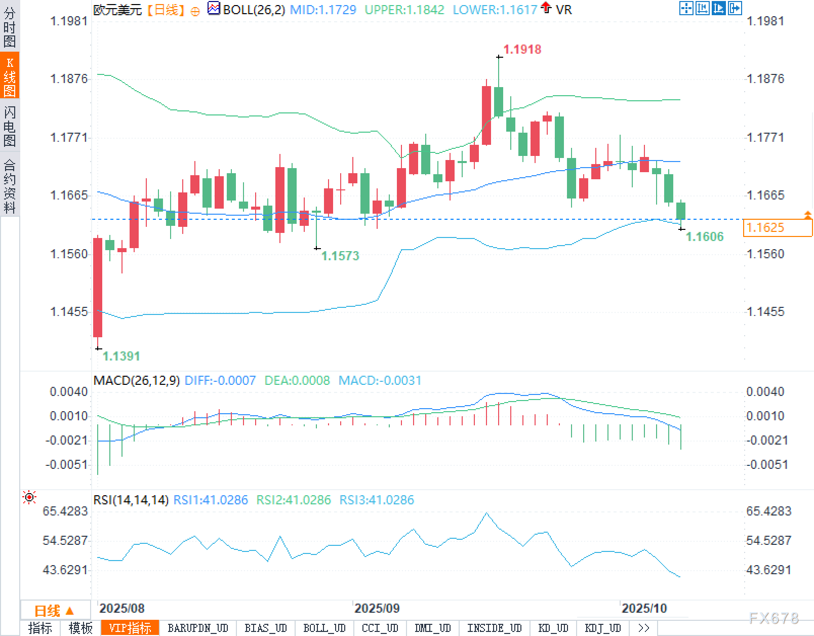 周三(10月8日),欧元兑美元延续三连跌并刷新自9月初以来低位区间,欧洲时段交投1.16上方。行情主因来自两端:欧洲方面,法国政治与财政不确定性升温;美国方面,联邦政府停摆进入第二周,参院两党尚无重启方案。避险偏好提升令美元获益,风险资产整体承压,欧元兑美元短线被动下行。 ![]() 法国的不确定性正在“放大”。对总统是否提前选举的压力升温,部分昔日盟友与反对阵营在“尽快选举或辞职”诉求上形成合流。评级机构警告:若政治僵局拖延,法国主权信用仍有下调风险。政治风高浪大线抬升了风险溢价,欧元先天承压。 美国政治亦不平静。参院民主、共和两党领袖仍未找到恢复拨款的路径,停摆已进入第二周。市场对“本周能否突破”的信心下降,当“功能性政府”的预期减弱,全球风险偏好随之降温,避险美元与传统安全资产获追捧,欧元兑美元受到被动挤压。 宏观日程方面,当日最受关注的是美联储会议纪要;欧洲时段,欧洲央行多位官员包括行长拉加德发声,美盘亦有多位联储官员出席活动。尽管拉加德周二重申“欧元区去通胀进程已完成”,并对法国按期提交预算表示“有信心”,但话语难敌市场对政治与财政的即时折价。 数据维度也未能给欧元托底。欧元区龙头德国8月工厂订单环比下滑0.8%,市场原本预期增长1.4%,且此前7月已录得-2.7%的收缩;同比则从7月的-3.3%转为+1.5%,但边际改善不足以扭转短期景气疲态。订单的“量能前导”属性意味着未来工业产出与外需仍偏弱,欧元的基本面支撑有限。 政策分歧加剧了不确定性。美联储内部的“鹰鸽之争”延续:明尼阿波利斯联储主席Neel Kashkari警示“若过快降息可能引爆通胀”;而由总统特朗普最新任命的理事Stephen Miran则强调“通胀与人口增长相关,货币政策需要放松”。在通胀路径尚未统一的叙事下,纪要若显露“更久维持限制性水平”的倾向,美元的利差与期限溢价仍有支持。 归纳来看:法国政治/财政不确定性+美国停摆的尾部风险→风险偏好走低→美元获避险与利差双重支撑→欧元兑美元进一步承压;而短线缺乏能快速逆转这一框架的重磅数据,空头趋势具备延续条件。 技术面: 日线图上,布林下轨1.1617、布林中轨1.1729、上轨1.1842。汇价三连阴后贴近下轨运行,呈现布林带“沿下轨下行”形态,短期趋势为下降趋势。自阶段高点1.1918回落后,K线实体普遍偏长、上影线增多,显示上方抛压主导。MACD指标中,DIFF为-0.0007、DEA为0.0008,死叉后柱状图为-0.0031,动能负向扩张,趋势性下压尚未衰减。RSI(14)报41.0286,位于“40—50”弱势区间,尚未进入传统超卖线(30)以下,预留了继续走弱或技术性反弹的双向空间。 ![]() 市场情绪观察: 本周的情绪主线是风险规避。法国政治与评级担忧抬升了欧元区资产风险溢价,美国停摆拖累全球风险因子定价,权益市场波动率上行,外汇端的美元资金回流与欧元风险贴水同步发生。期内“坏消息更具边际影响力”,任何利空更容易触发流动性收缩—价格下探—被动减仓的链条。 同时,市场对“政策确定性”的需求上升:一方面等待美联储纪要给出更清晰的“更久更高或更快更低”的时间框架;另一方面关注欧洲央行官员是否释放与“去通胀进程完成”一致的前瞻指引。情绪层面呈现空头市场情绪占优但未极端化——RSI未深陷超卖、期内仍可出现技术性反弹/死猫跳。简言之:悲观为主、但并非无反弹。 结语:当前欧元兑美元仍处下降趋势,基本面“风险偏好收缩+美元避险溢价”尚未松动;技术面“贴下轨+MACD负扩张+RSI弱势区”共振,空头占优。短线关注1.1617—1.1606保卫战与纪要指引;中线观察政治与政策两条主线能否为欧元带来由弱转稳的契机。 |