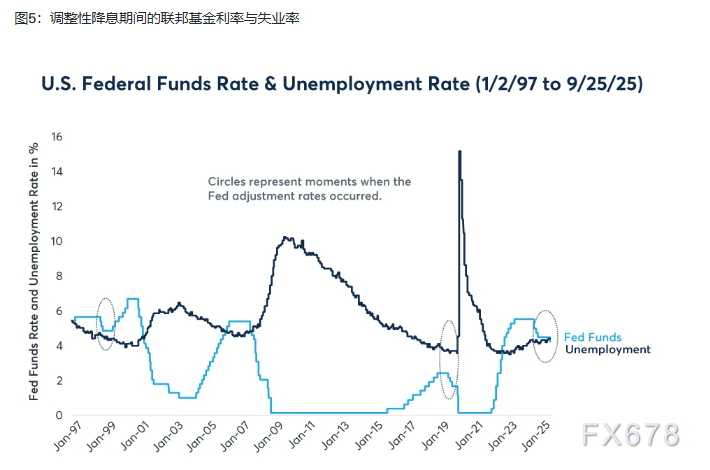 上月,美联储政策制定机构决定降息25个基点至4.00%-4.25%,这是自2024年12月以来首次实施货币宽松政策。美联储主席杰罗姆·鲍威尔表示,在美国劳动力市场出现疲软迹象之际,此次降息是“风险管理”措施。 ![]() 除失业率上升外,其他指标也显示劳动力市场正在放缓:2025年8月失业持续时间增至24.5周,较2024年8月的21周明显延长,创下2022年4月以来最高值;持续领取失业救济人数已达2021年秋季以来峰值。U-6失业率从7月的7.9%升至8月的8.1%也佐证了这一趋势。这意味着劳动者一旦失业,需要更长时间才能重新找到工作。 美联储肩负双重使命:实现最大就业与维持价格稳定。其中第二项任务自2021年以来始终充满挑战,因通胀率持续高于2%的政策目标。在2025年9月17日降息时,整体个人消费支出价格指数同比涨幅7月为2.6%,消费者价格指数同比涨幅8月达2.9%。 过往美联储曾将此类加息或降息的短期举措称为“风险管理”、“政策调整”或“周期中段调整”。 在当前失业率相对较低的环境下实施降息,引发出四个关键问题: 当失业率低于4.6%时,美联储进行降息的频率如何? 完成首次调整性降息后,美联储在短期内通常会继续降息多少次? 这对国债市场产生了何种影响? 股市在此类政策调整期间作何反应? 美联储在失业率低于4.6%时降息的频率如何? 美联储的“调整性”降息通常源于地缘政治紧张局势加剧,或是某些经济指标开始显现放缓迹象。这些调整往往发生在联储试图平衡其双重政策目标的关键时刻。 自20世纪70年代以来,如图1所示,美联储仅在失业率低于4.6%的情况下进行过三次降息,这被视作“调整性”举措。 ![]() 1998年8月17日,俄罗斯宣布货币贬值,对以卢布计价的债务违约,并暂停向俄罗斯金融机构的外国债权人支付款项,此举对全球市场造成冲击。随后信贷利差扩大,知名对冲基金长期资本管理公司倒闭。 联邦基金利率自1997年3月25日起维持在5.5%,直至1998年9月29日联邦公开市场委员会(FOMC)会议。时任美联储主席艾伦·格林斯潘因俄罗斯债务违约危机,将联邦基金利率下调25个基点,从5.5%降至5.25%以及“缓冲外国经济日益疲软和国内金融环境趋紧对美国未来经济增长的影响”。随后在1998年10月15日(介于联邦公开市场委员会会议期间)和同年11月17日又分别进行了两次25个基点的降息,联邦基金利率降至4.75%。 在1997年3月加息后,美国国债收益率在1998年前两次降息前及降息期间持续走低,随后在第三次降息前开始回升并保持上行趋势(图2)。在此期间失业率持续下降。 ![]() 截至2019年7月31日,失业率处于3.7%的历史低位,6月PCE和CPI同比涨幅分别为1.4%和1.6%。美联储将政策利率中值下调25个基点至2.125%,随后在9月和10月又分别降息25个基点,联邦基金利率中值降至1.625%。 美联储在2019年三次降息,尽管就业市场非常强劲,失业率处于50年来最低水平。根据2019年7月FOMC会议纪要,2019年降息的原因包括“近几个季度经济活动出现减速迹象”;“海外经济体经济增长明显放缓”;对通胀率长期低于2%目标的担忧;FOMC认为这是一项“审慎的风险管理”决策。 2019年7月之前,美联储上一次利率调整是在2018年12月,当时将联邦基金利率中间值从2.125%上调至2.375%。 在2019年调整期间,失业率从3.7%降至3.5%,直至2020年3月当COVID-19进入我们的话语体系时,该数字回升至4.4%。 在美联储第二次降息后30年期国债收益率上升,第三次降息后10年期收益率上扬(图3)。 ![]() 美联储最近一次调整是在2025年9月17日降息25个基点,因多项经济指标显示劳动力市场正在放缓。在随后的新闻发布会上,鲍威尔提到,在美联储过去几年专注于物价稳定后,美联储现在认为劳动力市场的下行风险有所增加。 图4显示了美联储近期“风险管理”降息前的政策利率和国债收益率曲线。2024年秋季降息后,收益率曲线的长端出现走高。自9月17日以来,收益率曲线整体呈上行趋势。 ![]() ![]() ![]() ![]() 市场会将此次降息解读为一个“周期中段调整”式降息周期的开始,而非孤立事件。如果市场普遍预期美联储在未来几个月内还会进行两次降息,那么这种前瞻性预期会提前反映在汇率中。投资者会倾向于提前卖出美元,导致美元在降息完全落地前就持续承压。 在调整性降息后的数月内,收益率曲线往往趋于稳定或趋于陡峭。美联储是否会遵循既往模式,在未来几个月内再实施两次25基点的降息? 北京时间16:11,美元指数现报99.04。 |