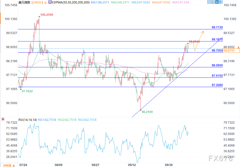 周四(10月9日)欧洲交易时段,美元指数(DXY)在98.85附近交投。日内波动剧烈,呈现先抑后扬再回落的态势。当前美国政府持续停摆,且美联储释放鸽派前景,这两大因素持续压制市场情绪。美国政府停摆已进入第九天,此前参议院否决了新的拨款提案,引发市场对经济长期受扰的担忧,投资者信心进一步受挫。 ![]() 美联储会议纪要对在短期货币政策问题存在分歧 周三公布的9月份美联储会议纪要显示,美联储决策者在短期货币政策问题上存在分歧:疲软的劳动力市场以及日益上升的通胀风险给央行带来了挑战。 会议纪要显示,多数政策制定者支持近期的降息举措,并对今年进一步宽松政策持开放态度。 根据芝商所(CME)美联储观察工具,目前市场预期10月美联储将降息25个基点,且12月再次降息的概率达78%。 欧元和日元的疲软正在推动美元走强 法国总理塞巴斯蒂安·勒科努于周一突然辞职,这一消息导致欧元汇率大幅下跌。目前市场正在等待埃马纽埃尔·马克龙总统任命新的总理,而这位新总理将面临一项艰巨的任务:在议会中面临强烈反对的情况下,努力削减法国的财政赤字。 在日本,自民党内部选举中主张财政宽松政策的高市早苗获胜后,市场开始猜测她是否会重新推行“安倍经济学”——即通过大规模支出和宽松的货币政策来刺激经济,而这无疑会进一步削弱日元的汇率。 聚焦鲍威尔讲话 目前市场注意力转向周四晚些时候美联储主席鲍威尔的讲话,以期从中获取政策线索。若讲话中出现任何反对进一步大幅降息的暗示,或有助于美元指数企稳;反之,若讲话重申美联储的鸽派立场,则可能使美元的疲软态势延续至后续交易时段。 技术分析 ![]() 美元指数(DXY)盘中维持在99.85附近,在突破50日和200日指数移动平均线(EMA)后,仍保持看涨结构。自9月中旬以来,一条上升趋势线为美元指数提供支撑,上行趋势未被打破。从当前价格走势看,美元指数在99.18这一关键阻力位下方盘整,若突破该阻力位,可能触发向99.70的进一步走势。 动量指标显示温和走强,相对强弱指数(RSI)接近63,这表明多头仍主导趋势。若美元指数向98.70进行健康回调,或为投资者提供重新入场的机会;而突破99.18则将确认上行趋势的延续。 总体而言,在趋势线和指数移动平均线(EMA)的协同支撑下,美元指数在98.30上方仍保持建设性前景。 |