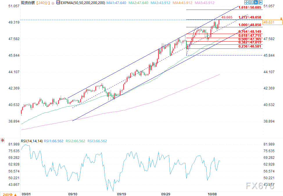 周四(10月9日)欧盘时段,白银价格在当日先波动震荡随后大幅上扬。尽管美元表现强劲,贵金属整体交投仍偏强。现货白银价格盘中报49.635美元/盎司,涨幅1.62%,离50.00美元的心理关口越来越近。 ![]() 当天早些时候,纽约联邦储备银行行长约翰·威廉姆斯表达了对进一步降息的支持。现在市场焦点转向美联储主席杰罗姆·鲍威尔和理事米歇尔·鲍曼,预计他们今日晚些时候将在华盛顿的一场银行业活动上发表讲话。 白银价格正逼近2011年和1980年创下的历史高位。白银价格已逾45年未突破50.00关口。近一个月前,白银价格才勉强超过41.0000,在不到一个月的时间里实现近20%的涨幅,这一表现相当亮眼。 不过,对于此前从未交易过白银的日内交易者而言,在大举入场前需了解两个关键事实。首先,白银的矿产产量较易提升;其次,地质学家探明的地下白银储量,远高于其他贵金属。换言之,尽管白银供应有限,但与黄金及其他贵金属相比,其储量规模不可同日而语。 50.00关键关口与价格回调 尽管如此,白银价格快速上行的势头难以轻易遏制。对于那些顺应上涨趋势的交易者,若采用了合理的风险策略,大概率已斩获丰厚收益。昨日白银价格创下高点,与多个贵金属品种普遍出现的投机性抢购潮直接相关。目前,白银50.00美元关口已成为众多大宗商品交易者热议的目标,市场普遍在讨论该价位能否实现突破。 不过,昨日当白银价格触及49.50及以上水平时,抛售压力开始显现,且今日早盘短期下跌走势依然强劲。市场很可能出现获利了结行为,尤其是若交易者对过去几周的盈利感到满意时,这种情况更易发生,但市场情绪也可能迅速反转。 价格波动与投机博弈 对于寻求快速获利的交易者而言,当前白银市场的波动节奏极具吸引力。但需注意的是,白银向来是投机风险较高的大宗商品,因其价格往往容易出现剧烈反转。 当前白银市场似乎已出现过度乐观情绪,考虑在当前高位附近做空白银的日内交易者,在下单时也必须保持谨慎。逆势对抗强劲的买入趋势,可能会导致巨额资金损失。 技术分析:50.00美元心理关口吸引多头 ![]() 白银持续走高,过去三周该货币对已上涨超20%,看似有些超买,但基本面情况仍具支撑,且除4小时相对强弱指标(RSI)出现看跌背离外,暂无回调迹象。 周四早盘,白银从48.40美元反弹,已触及49.70区域,多头正瞄准50.00美元关口,该位置是自9月中旬低点以来上升通道的上沿与价格的交汇点。进一步上方,10月初涨势的161.8%斐波那契扩展位在50.70美元。 下方来看,初步支撑位在周三低点48.40美元,再往下是趋势线支撑与10月7日低点的汇合处,位于47.50美元,以及9月30日和10月2日低点所在的45.90-46.00美元区域。 |