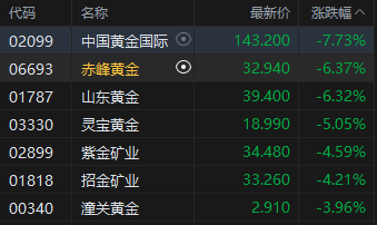 黄金股普跌,中国黄金国际跌超7%。消息面上,今天凌晨,现货黄金失守3960美元/盎司关口,较高位回落近100美元/盎司,COMEX黄金期货收跌1.95%。据报道,当地时间10月9日晚,哈马斯高级官员、首席谈判代表哈利勒・哈亚发表声明宣布达成停火协议。以色列政府10日凌晨批准加沙停火协议。