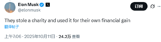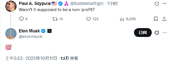 北京时间10月11日早间消息,马斯克在X表示,OpenAI建立在谎言之上的,他们“窃取了慈善机构的资金并将其用于自己的经济利益”。有网友称“它不应该是个非营利组织吗?”马斯克则用“100分”表情包表示赞同。