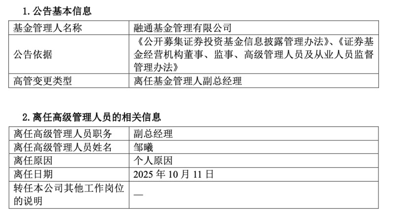 财联社10月12日讯(记者封其娟)邹曦的离任,显然更加深了行业对融通基金人才松动的印象。 融通基金最新公告称,因个人原因,邹曦已于10月11日离任副总一职,且不再转任公司其他岗位。据中基协,邹曦所在从业机构仍显示为融通基金,但已不是该公募登记在册的基金经理或投资经理。 ![]() 在约一年时间里,这位融通基金老将经历了部分产品卸任、全部产品清仓,到最终卸任高管职务。 9月6日,邹曦已卸任全部在管的4只产品,有传闻称其或将告别公募行业。彼时卸任的融通行业景气、融通产业趋势、融通领先成长以及融通中国风1号等4只产品,分别交由李进、何龙、万民远、程越楷等多位中生代基金经理接棒管理。 早于2024年9月、10月,邹曦已分别卸任融通通乾研究精选、融通通乾研究精选,保留上述4只产品的管理权限。 不仅前5个月,才有百亿女将范琨的清仓式卸任且离职。更早些的2024年,前任总经理张帆离任。不得不说,自2022年实控人变更,融通基金在跻身央企系公募后,一直持续着高管的变动。 融通基金年内2位权益老将离任 据中报披露,邹曦2001年5月加入融通基金,历任行业研究员、基金经理、研究部总经理、权益投资部总经理等。至今,邹曦供职融通基金也已超过24年。 Choice数据显示,在2020年一季度末,邹曦首度跻身百亿基金经理行列,在管总规模又在2020年三季度末达到157.77亿元的历史峰值。到了2021年三季度末,邹曦在管总规模跌破百亿大关。截至今年年中,邹曦旗下4只产品在管总规模为39.24亿元,较历史峰值缩水超70%。 市场普遍认为,邹曦在管产品出现规模下滑、投资者大量赎回,与重仓地产板块并遭遇行业深度调整直接相关。 据统计,邹曦先后管理过9只公募产品,其中融通行业景气、融通领先成长、融通产业趋势、融通内需驱动任职回报为正,其余5只产品任职回报均为负值。而据Choice披露,前4只产品的业绩回报排名均位于后50%。 这已是融通基金年内第二次重要人事变动。今年4月30日,范琨因休产假,清仓卸任在管所有公募产品。据中基协,融通基金登记在册的员工里已无范琨。 更引人关注的,是公告给出的离任理由是休产假。基金经理通常通过短期休假来应对此类情况,而非彻底卸任全部在管产品。 履历显示,范琨是融通基金自主培养的投资干将。自2012年7月加入融通基金,范琨历任化工行业研究员、周期行业研究组组长、研究部副总监等。离任前,融通基金公告显示,范琨已是融通基金研究部总经理,也是公司大类资产配置投资决策委员会中的一员。 2023年三季度末,范琨在管总规模首度突破百亿大关,达到109.39亿元,这也是她在管规模的历史峰值。截至今年一季度末,范琨在管规模为37.78亿元,较峰值缩水六成以上。 2024年二季度,范琨首先卸任融通明锐,该产品规模迅速缩水四成以上。自同年9月底,范琨旗下融通增强收益、融通成长30、融通内需驱动等3只范琨在管产品以每月1只的速度先后增聘基金经理。 近三年高管频繁更迭 融通基金是国内第二批、全国第十三家公募机构,2001 年 5 月成立于深圳,注册资本1.25 亿元。回溯来看,融通基金的股东结构历经多轮调整。 成立之初,融通基金的股东以国内券商及信托机构为主,具体包括联合证券、河北证券、国泰君安、陕国投、爱建信托等,尚未引入外资股东。2006年,通过股权转让引入日资机构日兴资产,后续随着股东进一步整合,最终形成新时代证券持股 60%、日兴资产持股40%的稳定格局,这一结构持续至2020年。 2020年7月,原控股股东新时代证券因治理失衡被证监会依法接管,引发融通基金股权连锁变动。2021年12月,中国诚通集团以131.35亿元受让新时代证券98.24%的股权。2022年3月,证监会正式核准中国诚通成为融通基金实际控制人;同年,原新时代证券更名为诚通证券,融通基金也由此跻身央企系公募阵营。 股权变更后,融通基金高管团队开始密集更迭。2022年5月,高峰卸任董事长,由诚通证券董事长张威接任。同年年底,圆信永丰原副总江涛加入融通基金,并任副总。2023至2024年期间,公司陆续引进华安基金杜国彦担任副总、召回旧将商小虎先任副总、后升任总经理;2024年1月,平安银行北分原副行长张民出任公司副总。 去年4月23日,融通基金发布高级管理人员变更公告,公司总经理张帆因个人家庭原因离任,副总商小虎代为履行公司总经理职责。张帆于2017年6月正式出任融通基金总经理,任职近7年。当年10月,融通基金正式宣布商小虎出任公司总经理。 截至2025年年中,融通基金公募资管总规模为1541.98亿元,其中货币基金、债券基金、权益基金的资管规模分别为809.83亿元、446.9亿元、272.7亿元。其中,权益资产环比一季度末缩水6%。 |