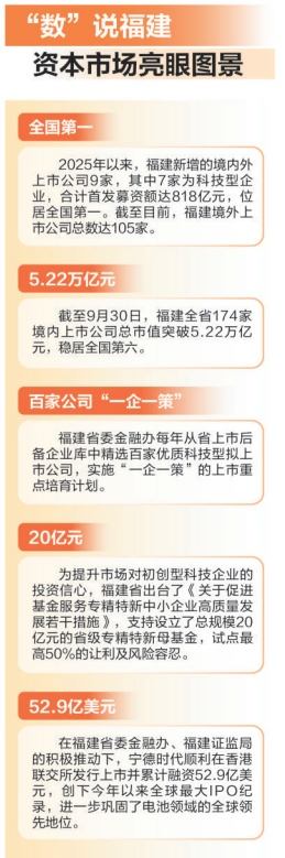 福光股份办公楼 宋春雨/摄 在培育科技企业从初创到上市,为“数字丝路”铺下更坚实基石之外,福建也建起了“金融丝路”,帮企业连通境外资本市场。2025年以来,厦门新增了4家境外上市公司,境外上市公司总数达到了33家。厦门证监局表示:“我们对拟赴境外上市的企业,特别是计划发行H股的A股公司,开展了‘一对一’的跟踪指导。多次走访调研相关企业,深入了解其港股发行进展,帮企业积极协调解决相关问题。” 在福建省委金融办、福建证监局的积极推动下,宁德时代顺利在香港联交所发行上市并累计融资52.9亿美元,创下今年以来全球最大IPO纪录,进一步巩固了电池领域的全球领先地位。今年以来,福建新增的境内外上市公司9家,其中7家为科技型企业,合计首发募资额达818亿元,位居全国第一。截至目前,福建境外上市公司总数达105家。 在福建,各级政府部门正以对企业“躬身服务”的意识为画笔,勾勒出时刻为大小企业洒下金融甘霖的“气象图”,让更多的科技产业能像今天的人工智能产业一样茁壮成长,成为“参天大树”。 从福建船政学堂的“科技火种”,到刺桐港和月港“涨海声中万国商”的贸易盛景,再到今天AI领航、破浪出海的“科技舰队”,福建敢闯、敢试、敢融通的血脉始终奔涌不息。未来,福建的企业和企业家们将继续以“爱拼才会赢”的姿态,在这片写满无数故事的土地上,开启科技创新与经济跃升共振的崭新征程。 (调研组成员:证券时报记者安宇飞、宋春雨,福建日报记者陈F、张辉) 创新无止境 研发不言败――解码福建创新的底层逻辑 证券时报记者 安宇飞 “创新没有错误,研发不谈失败。”走进国投智能新总部,墙上的一行标语赫然在目。这把解开福建创新密码的“钥匙”,解答了“敢闯敢拼”精神是如何在这片土地上演变成一套可复制、可培育、可生长的创新机制。 “大家有个误区,总认为企业有‘上帝视角’,知道做什么产品一定能成功。但实际上,在充分的市场竞争中,没有任何‘上帝视角’会告诉我们,今天做这个产品就一定会成为爆款。”国投智能总经理周成祖如是说。 创新,不是一场路线明确、终点清晰的“短跑”,而是一场需要不断试错、调整方向、没有尽头的漫长探索。它需要勇气和判断力,更依赖机制,需要允许失败、鼓励冒险的组织土壤。 国投智能便在公司内部推行了“极客模式”,允许有创新思路的员工自由组队、申请经费、购置各种“稀奇古怪”的设备来“玩”创新。就像谷歌,允许员工把20%的工作时间用于自己感兴趣的项目。正是这种模式,为国投智能孕育出了一系列拳头产品。 而更具魄力的是国投智能的“A+X”创新创业计划,公司主动孵化内部团队,给予资金、平台支持和足够自由度,推动其大胆研发。这种模式下孵化出来的“服云”等项目团队最终以数亿元估值被收购,实现了员工、企业与产业创新的多赢。 这种创新理念并非个例,在福建,越来越多的企业正以不同方式践行着“创新无禁区,不唯结果论”的理念。如美图,依托其深耕多年的美图影像研究院(MT Lab),推行内部创新机制,孵化出Wink、美图设计室、开拍、RoboNeo等AI产品,形成了覆盖生活与生产力场景的“产品全家桶”,打开国内外市场增量。 福建整体的生态也在支持创新、支持试错:总规模20亿元的省级专精特新母基金试点最高50%的让利及风险容忍;福建证监局推动地方政府定期举办“创投日”活动,引导长期资本、耐心资本支持科创企业发展……福建创新的真正密码,或许就藏在这种对“失败”的包容和对“过程”的尊重中。它不追求“上帝视角”的精准预判,而是通过机制建设打开创新空间、降低试错成本,形成呵护创新种子的“雨林生态”。 正如周成祖所说:“一家企业的核心竞争力不是技术,而是文化――能够持续吸引人才、孵化创新的文化。”技术总会过时,创新永无止境。福建将创新的“单点突破”变成了系统生态的培育,而这正是福建从“数字大省”走向“创新强省”的底层密码。 责编:万健t 校对:祝甜婷