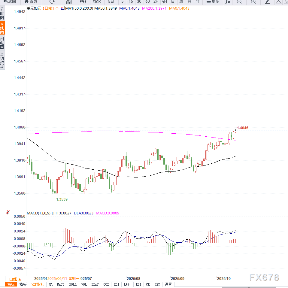 周二亚洲时段,美元兑加元交投于1.4040附近,投资者正关注美联储主席鲍威尔当天在美国全国商业经济协会(NABE)年会上的讲话,预计将对未来货币政策方向提供关键信号。 ![]() 加拿大方面,上周公布的就业数据表现强劲,新增岗位和工资增长均超出市场预期。受此影响,市场对加拿大央行(BoC)10月29日会议降息的押注从72%降至50%。 这使得加元在近期商品价格波动中表现相对稳健,为美元兑加元的进一步上行带来一定阻力。 蒙特利尔银行(BMO)经济学家James Peterson表示:“加拿大劳动力市场的韧性为加元提供了短期支撑,但若油价持续走弱,加元仍可能承压。” 日线图形结构来看,美元兑加元自9月初突破1.3800后一路上扬,目前价格运行于20日与50日均线之上,显示中期趋势依旧偏强。 然而,RSI指标已升至75以上,显示出明显的超买状态,MACD动能柱开始趋于平缓,暗示上行动能减弱。 若汇价持续受阻于1.4050—1.4070区间,短线可能回调至1.3980初步支撑位,进一步支撑位位于1.3920(20日均线)。若突破1.4070并站稳,则可能开启新一轮上攻目标至1.4150区域。 技术分析师David Lee指出:“在高位震荡期间,若美联储言论偏鸽,美元兑加元存在短线回调风险,关键支撑在1.3980附近。” ![]() 美元兑加元当前的上涨更多源于市场对美国政治与政策的不确定性反应,而非经济基本面的持续改善。短线内,若鲍威尔在讲话中暗示更快的降息节奏,美元可能出现获利回吐,加元则有望获得修复性反弹。 整体来看,汇价仍处于高位震荡区间,1.3980至1.4050的区间波动将成为本周市场的主要焦点。 |