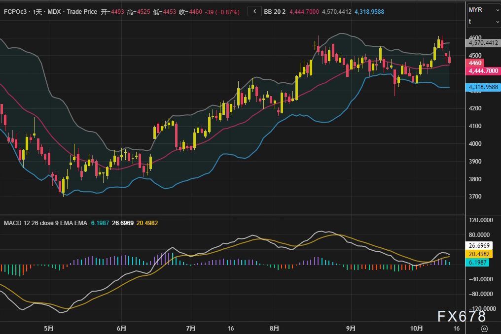 周二(10月15日),马来西亚衍生品交易所棕榈油主力合约延续跌势,截至昨日收盘,12月合约报收4460林吉特/吨,日内下跌39林吉特,跌幅0.87%,已连续三个交易日收跌。盘面技术指标显示,布林带中轨位于4570林吉特附近,短期价格承压于中轨下方,MACD双线粘合,市场动能略显疲弱。 ![]() 本轮调整主要受获利了结与市场情绪转弱影响。吉隆坡某交易员指出,部分多头在缺乏新利多驱动的背景下选择离场,导致价格承压。与此同时,市场目光聚焦于今日即将公布的10月1日至15日出口数据。这一数据被视为判断需求韧性的关键指标,若表现强劲,或能遏制当前跌势。 关联市场亦传递消极信号。大连商品交易所豆油主力合约下跌0.51%,棕榈油合约跟跌0.49%;芝加哥期货交易所豆油价格跌幅达1.32%。作为全球植物油市场的竞争品种,外围油脂价格的走弱进一步削弱棕榈油的边际吸引力。 能源与货币因素交织 原油市场近期波动加剧,知名机构国际能源署对需求基本面的悲观预期压制油价,间接影响棕榈油在生物柴油领域的应用前景。尽管林吉特兑美元汇率微贬0.07%,略微提升棕榈油对外报价的竞争力,但这一利好未能抵消整体市场的空头氛围。 机构观点:等待数据打破僵局 针对后市,分析师分歧显著。部分机构认为,当前回调属于技术性修正,若出口数据符合预期,价格有望重拾升势。吉隆坡交易员强调:“市场需要出口数据提供明确方向,否则短期波动或延续。”亦有观点指出,若原油价格持续疲软,棕榈油与柴油价差收窄可能抑制生物柴油掺混需求,进而对中长期价格构成压力。不过,若未来产地产量因季节性因素下滑,供需格局或迎来转折。 总结:短期震荡与长期变数并存 综合来看,棕榈油市场正处于多空因素拉锯阶段。技术面偏弱、关联市场拖累及资金获利了结构成短期压力,而出口数据与潜在供应变化将成为未来破局的关键。专业投资者需密切关注今日公布的出口船运数据,以及原油市场情绪变化,以捕捉市场方向性突破的契机。 ![]() |