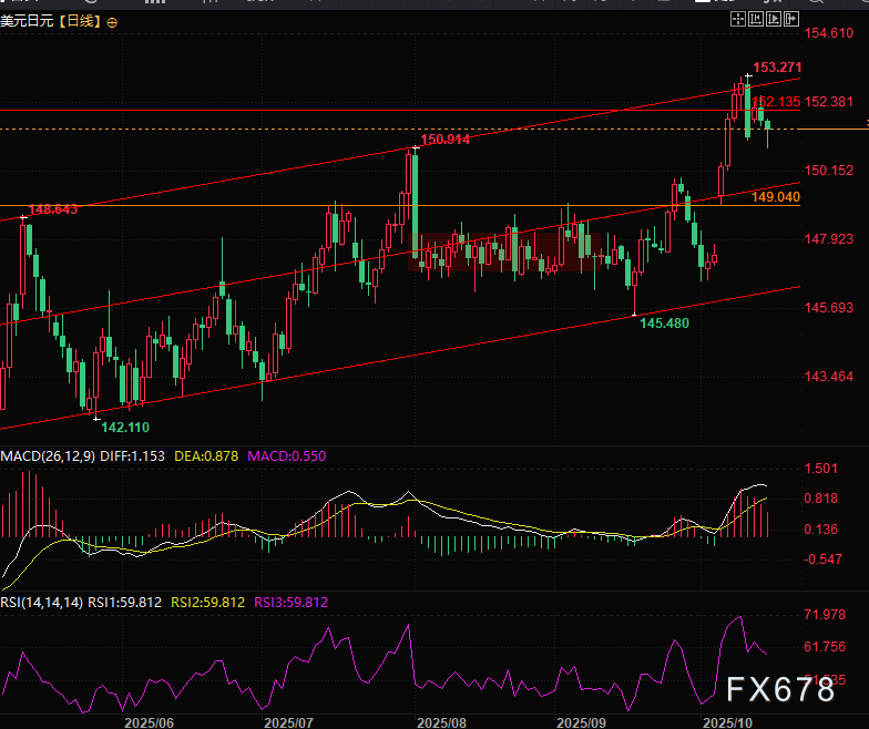周三亚欧时段美元兑日元走出探底回升走势,受今天凌晨鲍威尔鸽派发言影响,美元走弱,使汇价盘中一度跌0.6%,随后北京时间8:30美国公布了远超预期的美国10月纽约联储制造业指数,市场预期为-1,实际变为了10.7,不仅数据站上了0轴以上的扩张区间,还是10以上这种大数字,美元随后应声上涨,美元兑日元由水下回升至水面附近,目前微跌0.1%,交投于151.67附近。 ![]() 隔夜市场风险偏好抬头,美国指数期货触及本周新高,欧洲市场则分化走弱但掌舵爹少。外汇市场上,美元指数对多数主要货币走弱,回吐近期强势涨势中的部分空间。本周市场由乐观与谨慎情绪博弈主导,核心主线仍是美联储降息预期——即便黄金持续突破至4200美元以上的全新历史高位,该预期仍对风险偏好形成支撑。 投资者对中美贸易摩擦局势再起多持淡化态度,对特朗普总统就食用油进口发出的最新威胁反应相对平淡。 与此同时,美国银行业乐观的财报数据夯实市场对美国企业韧性的预期,即便美国政府停摆持续,股市仍获支撑。 美元指数回落既反映全球风险情绪改善,也源于美联储主席鲍威尔的鸽派言论——他明确表示,劳动力市场风险升温,为再次降息提供支撑。今日早间,法国总理塞巴斯蒂安·勒科尔尼承诺推迟颇具争议的养老金改革,缓解市场对法国政局的担忧,进一步为风险偏好添能。 鲍威尔鸽派言论施压美元走软 美国政府停摆持续,经济数据供给稀缺,市场焦点由此集中于美联储主席杰罗姆·鲍威尔。鲍威尔昨日讲话时坦言,美国劳动力市场下行风险升温,称这为9月降息提供合理性支撑。尽管政府停摆导致数据发布中断,他仍暗示本月晚些时候或再降息25个基点,甚至提及量化紧缩(QT)退出的可能性。不过自9月以来,整体政策基调未发生显著偏移,市场仍普遍定价今年还将有两次降息。在下次通胀与就业数据公布前,该预期难现实质性扭转。 鲍威尔的鸽派言论足以令美元回吐近期大部分涨势,同时,强劲的风险偏好提升以及法国政局担忧缓解引发的欧元空头平仓,进一步对美元形成压制。 贸易不确定性或推升日元避险吸引力 贸易领域相关动态持续受到关注,此前中方未增加美国大豆采购量,美方曾提及考虑限制中国食用油进口。 目前,中美双方能否达成相关协议(例如延长关税休战安排)仍有待观察,从当前情况看,达成协议的可能性相对高于贸易摩擦进一步升级至更紧张状态。不过,贸易层面的不确定性无疑在上升,这种态势可能促使市场对具有避险属性的日元需求增加,进而对美元兑日元及其他日元交叉货币对的走势形成一定压力,限制其上行空间。 技术分析: 美元兑日元或已构筑短期顶部。该货币对在一轮强劲涨势后,日线图上录得大型看跌吞没形态。 此轮反转恰好在153.20-154.00趋势线阻力位附近触发——该阻力线源自2024年7月与2025年1月高点,价格在靠近153.20处遇阻回落。尽管已出现看跌信号,但考虑到该货币对近期的看涨走势,仍需更多价格走势确认反转有效性。 即时阻力区间在152.25-152.50附近,151.00则为当前关键支撑位——该点位已受测试并成功企稳。 ![]() 北京时间21:41,美元兑日元现报151.56/55。 |