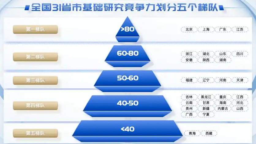 报告从基础研究投入、产出、成长三个维度设计构建了基础研究竞争力指数。根据报告,十强省市是我国基础研究主力军,拥有国家重大科技基础设施数量全国占比84.62%,国家实验室数量全国占比87.50%,全国重点实验室数量全国占比67.10%,发表高水平论文数全国占比89.97%,发明专利申请量全国占比77.09%。 报告还指出,北京引领全国基础研究,辐射天津、河北两地,京津冀基础研究合作专项达到227项,支持经费超过1亿元,三地SCI合作论文较2023年增长近85%;长三角省市的基础研究竞争力以上海为引领,苏浙两地差距在收窄,重大基础设施数量30个,全国占比近1/3,院士377人,全国占比1/4,高水平论文132篇,全国占比近1/3。 |