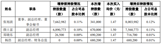 (图片来源:截图自利欧股份公告) 复盘来看,利欧股份完成减持计划的高管获利丰厚。根据利欧股份2024年7月份发布的关于公司高级管理人员增持公司股份的公告,2024年董秘张旭波、副总经理颜土富、副总经理郑晓东、财务总监杨浩分别增持了34.1万股、67万股、69.02万股和68.02万股,增持均价最低为1.47元、最高为1.50元。用利欧股份当前股价和高管增持均价来计算,上述4位高管增持股份的浮盈比例都不低于242.67%!