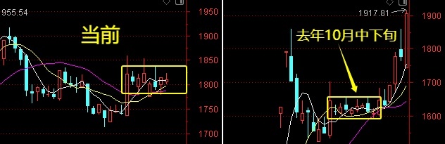 ▲数据来源:Wind 尽管市场成交额回到了两万亿元之内,但也出现了两个积极现象。 首先,上证50指数已经回到了前高附近,且当前位于去年10月高点附近。上证50指数作为A股市场的“脊梁”,其在去年10月高点附近磨一磨,进行蓄势,有助于后续行情的展开。 其次,上证指数今天突破了周二的高点3918点。 突破3918点意味着什么?意味着可以从左侧确认后续震荡向上的进程将加快。 以上是就宽基指数来观察的,接下来谈一下对指数影响较大的板块。 上周日,达哥在文章中指出,本周前半段时间,金融股会有稳定市场的预期,可以考虑权重类宽基指数ETF。 从本周的表现来看,达哥的上述预判是正确的,但寄予期望的证券板块却没有发力。或许等大盘冲关的时候,这个板块才会有表现。 9月29日,证券板块指数大涨4.75%,收出中阳线,至今已横盘震荡了7个交易日。 这样“单阳线+横盘震荡”的走势,是一种蓄势形态,有一定的等待进攻味道。 去年10月18日-10月30日,证券板块指数出现了这种走势形态,之后大盘及券商股迎来了一波涨幅不算太大的行情。
