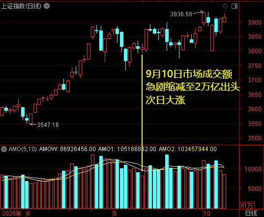 ▲证券板块指数的两段走势对比 另外,今天市场成交额回到了2万亿元之内,上一次接近2万亿元是9月10日,当时刚好2万亿元出头。就在投资者担心市场成交的时候,上证指数于次日迎来了1.65%的上涨。