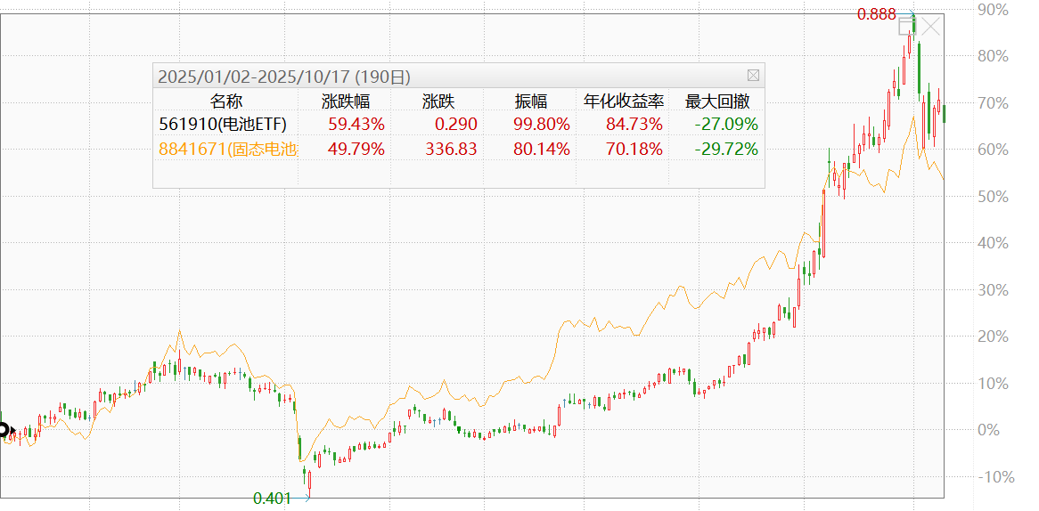 资料来源:中商情报网、国海证券研究所 固态电池技术持续突破,我想应该有不少朋友,想抓住这波投资风口。比起直接投资固态电池指数,这只紧密跟踪CS电池的电池ETF(561910)或许是更好的选择。数据上看,今年以来电池ETF的涨幅高出固态电池指数10个百分点!