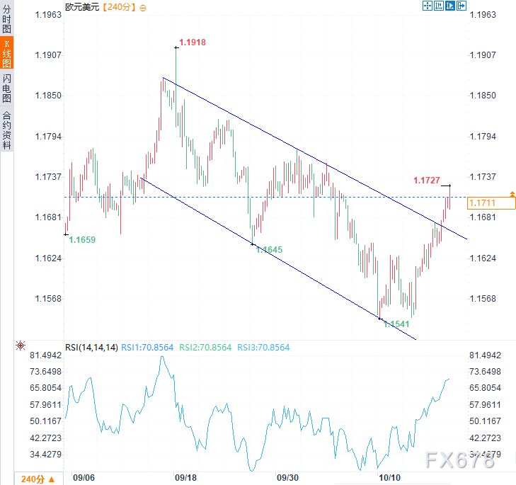 欧元/美元连续第四个交易日走强,周五(10月17日)欧市时段震荡走强,基本守稳1.1700关口上方,涨幅约0.18%,一度达1.1727创下一周高点,有望创下三个月来最佳单周表现。市场对贸易摩擦的担忧,以及美联储在接下来两次会议上被迫两次降息的预期,正在打压美元走势;而在欧洲市场,投资者都聚焦于9月调和消费者物价指数终值数据。 ![]() 周五经济日程中,欧元区HICP数据将成为焦点,预计将证实9月通胀压力加速。周五晚些时候,美联储将发布工业产出报告,随后圣路易斯联储主席阿尔贝托·穆萨勒姆将发表讲话。 贸易紧张局势、美联储降息预期及政府停摆打击美元 美元恐将录得数月来最差单周表现,主要受到以下因素共同打压:贸易紧张局势持续发酵、美联储未来数月可能多次降息的信号增强,以及政府拨款法案僵局未解预示联邦停摆恐将延续。 本周早些时候发布的美联储褐皮书加剧美元压力,该报告警告经济放缓风险——消费者支出显露疲软迹象,劳动力市场陷入停滞,企业则对经济前景不确定性及高关税影响表示担忧。 市场焦点现已转向欧元区HICP终值,预计将确认9月消费者物价同比涨幅从8月的2%加速至2.2%,而核心通胀率预计保持2.3%的稳定增速。 欧洲央行方面,管委皮埃尔·温施周四表示进一步降息的可能性正在降低,管委马丁·科赫尔则明确央行“已处于降息周期尾声或非常接近终点”。 法国政局出现缓和,总理塞巴斯蒂安·勒科尼周四成功挺过两次不信任投票,缓解了对该国政治不确定性的担忧,为欧元提供额外支撑。然而其仍面临在年底前推动紧缩预算案在分裂议会通过的挑战。 技术分析:欧元/美元或将在1.1730附近遭遇阻力 欧元/美元连续第四日走强,有望创下七月中旬以来最佳单周表现。当前价格走势即将触及双底形态目标位1.1730,而4小时图相对强弱指数(RSI)进入超买区域,表明汇价可能迎来技术性整理甚至部分获利了结。 上行方面,若有效突破前述1.1730阻力位,上行通道将指向10月1日高点1.1780附近;进一步上行目标将看向9月23日高点1.1820。 下行方面,若近期连续上涨后出现修正行情,反向趋势线支撑(现位于1.1665附近)或将经受考验。失守此处后,周四低点1.1640、整数关口1.1600及10月14日低点1.1545附近将依次成为下方支撑。 ![]() 北京时间16:14,欧元兑美元交投于1.1706/07。 |