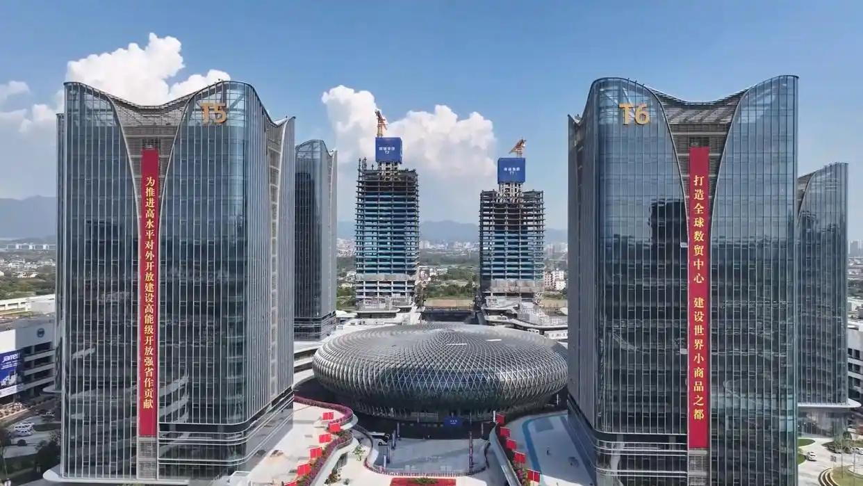 图片来源:新华社 在义乌的计划中,数字化不只是工具,而是撬动贸易底层逻辑的革新。 “在全球数贸中心部署的数字技术能力,绝不仅仅是服务这一项目本身,而是将深度嵌入整个义乌的国际贸易体系,服务和赋能整条产业链、供应链的运转,推动整个义乌国际商贸城一至五区向第六代数字市场同步升级。”商城集团总经理包华向媒体表示。 数字化催生了“直播+平台+跨境电商”的融合发展模式以及诸多新业态。贸易要素也被数字化所重构,传统的“人、货、场”三要素升级为“人、货、场,信息流、货物流、资金流”六位一体的新生态。 新生态最直观的改变是“人找货”,第五代国际商贸城面积大、品类多,采购商找商品和商位要耗费大量时间,效率较低。在第六代全球数贸中心可以打开“小商AI导航”,不仅能精准导航,还可以商品搜索、识图识货,提升采购体验。 中南财经政法大学工商管理学院副教授、湖北自由贸易试验区研究院秘书长刘凯告诉我们,从第五代国际商贸城到第六代市场全球数贸中心,义乌实际上完成了一个非常大的跨越。 首先是新业态的跨越,其次是数字化赋能的跨越,第三是服务贸易模式的跨越,从过去单纯的商品出口跨越到全产业链甚至服务贸易。 这些跨越的过程中,海量交易数据的沉淀、应用场景的丰富,以及全国乃至全球经济要素的链接,又能拉动人工智能及数字孪生技术的创新。 02值得一提的是,全球数贸中心也做了一些“减法”。 2001年,义乌第五代市场——国际商贸城破土动工,次年商贸城一区投入使用。此后十年内,商贸城经历了数次规模增长,从二区、三区,一直开到了2011年投用的五区。 几经扩建后,国际商贸城经营面积超过640万平方米,经营摊位数达7.5万个。如果在每个摊位前停留3分钟,按每天8小时算,逛完这些摊位至少需要一年多的时间。 全球数贸中心总面积125万平方米,市场板块建筑面积41万平方米,标准面积约27平方米,较国际商贸城缩水明显。根据招商整体安排,全球数贸中心先期进行市场1-3层招商,共开放商位3000多间。从数量看,相较于义乌目前7.5万间商位,占比不足5%。 刘凯认为,空间“凝缩”本身就反映了数字贸易的特征。传统贸易时代,空间是影响贸易的重要因素。数字化提供的便利,让空间对贸易的阻碍大大降低。虽然市场的物理空间缩水,却可以通过网络,实现更大的链接。
