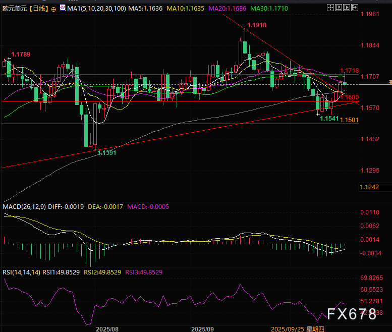 周五亚欧时段,欧元兑美元在美股开盘前回吐日内涨幅,目前交投于1.1677附近,日内早些时候曾触及1.1727高点。尽管如此,该货币对兑由于美元的走软仍有望实现0.6%的周度涨幅。 ![]() 周五公布的欧元区数据显示,9月消费者物价环比上涨0.1%,与8月持平;同比通胀增速从上月的2%升至2.2%。值得注意的是,核心调和消费者物价指数(HICP)同比涨幅从先前预估的2.3%上修至2.4%,为今年4月以来的最高水平。 上述数据印证了欧洲央行(ECB)官员文施与科赫尔周四的表态——两人均指出,欧洲央行或已处于降息周期尾声,或已非常接近这一节点。 周四,欧洲央行行长皮埃尔·文施表示,进一步降息的可能性正逐步下降;而欧洲央行行长马丁·科赫尔则确认,央行“已处于降息周期尾声,或已非常接近尾声”。 贸易局势、美联储降息信号压制美元走势 受中美贸易局势持续发酵、美联储未来数月可能多次降息的信号不断增多,以及政府拨款谈判毫无进展(意味着美国政府停摆或将持续较长时间)等因素叠加影响,虽然周五晚上特朗普在社交平台上关于贸易的发言短期提振了美元但美元料依然将创下数月来最差单周表现。 本周早些时候,美联储《褐皮书》进一步对美元构成压力,报告明确警示美国经济正面临放缓风险:消费者支出开始显现疲软迹象,劳动力市场呈现停滞态势,企业则对经济前景的不确定性及关税上调的影响表达担忧。 法国政局缓和短期支撑欧元 过去几个交易日,欧元呈现小幅走高态势,原因是投资者对法国近期政治不确定性的消除松了一口气。勒科尔尼在意外辞职后重新被任命为总理,同时总理塞巴斯蒂安·勒科尔尼周四顶住两次不信任投票,这一结果缓解了市场对法国政治前景不确定性的担忧,也为欧元提供了额外支撑。 同时受美联储进一步降息预期的显著压制,美元上涨空间有限。美联储理事克里斯托弗·沃勒周四明确表示,支持10月再实施一次降息;而特朗普近期提名的美联储理事会成员斯蒂芬·米兰则重申,有必要采取更激进的降息操作。 他在2026年预算案上做出的让步获得了社会党人的积极回应,这也使得政府的预算法案有望顺利完成立法程序。不过,重大挑战依然存在,尤其是延迟提高退休年龄的问题——法国当前退休年龄定为62岁,且至少要到2028年1月才会调整(目前为欧盟成员国中并列最低水平),他仍需在年底前推动紧缩预算案在分歧严重的议会中获得通过,这仍是一项艰巨挑战。 这一情况对欧元区而言并非长期利好信号,因为在政府分歧严重的背景下,当局若无法通过此类关键养老金改革,将导致纳税人承担更重负担,以支撑日益失衡的人口结构(老年人口占比过高)。 这不仅可能推升债务的风险溢价,还将限制政府通过扩大财政支出支撑经济增长的政策空间。 技术分析: 之前讲过1.1600是多空分界线,欧元兑美元守住1.1600后直接继续上涨突破了下降压力线。 目前受20、30日均线压制,短期重拾了上涨形态,支撑在1.1600和下降压力线上。 压力在1.1720附近的前期成交密集区。 ![]() 北京时间21:09,欧元兑美元现报1.1675/74。 |