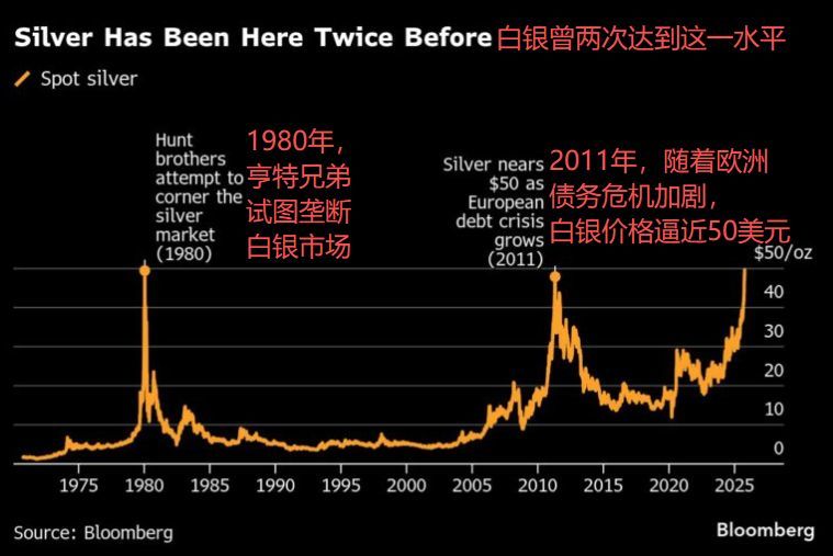 从历史上看,这并非白银第一次点燃全球市场的想象力。1980年,在通胀肆虐与市场操纵的狂潮中,白银被得州亿万富翁亨特兄弟推至50.35美元的高位;2011年,在量化宽松与避险情绪的裹挟下,白银再度逼近这一心理关口。但两次疯狂的行情均以大跌结束。 如今,白银涨至53美元的历史高位,让市场不得不思考:这一次,究竟是投机旧梦重演,还是一个新的金属时代正在开启?白银能否打破“50美元魔咒”? 中信建投贵金属首席研究员王彦青对《每日经济新闻》记者分析称,白银上涨逻辑和黄金类似,主要经济体债务和财政风险上升、地区冲突阴云未散、美联储货币政策走向不明确,都令避险情绪持续高企。 据媒体报道,大量资金透过交易所交易基金(ETF)等渠道涌入白银市场,实物银大量囤积在仓库中。伦敦作为全球主要场外白银交易中心,今年出现前所未有的供给紧张局面。另外,市场还一度传言美国可能将白银列为关键矿产并对进口征税,促使贸易商抢运白银进纽约市场,进一步抽干了伦敦库存。 王彦青对每经记者表示,目前白银资金中有很大的比例在ETF中,ETF会锁定白银现货,导致现货缺乏流动性。这样就陷入了一个自我强化的循环,现货紧缺导致价格上涨,价格上涨又吸引更多资金流入ETF导致现货被锁定。数据显示,全球最大的白银ETF iShares Silver Trust上周净流入约4.23亿美元。 而据外媒报道,工业需求也是白银价格上涨的驱动力之一。根据投资公司Sprott 7月发布的研究报告,工业需求占白银使用量的59%。白银对于太阳能电池板、电动汽车和消费电子产品至关重要。国际白银协会的数据显示,全球白银需求已连续第五年超过供给,市场处于供应短缺状态。 白银还有上涨空间?对比白银的前三次大涨,不难发现,每次冲顶都伴随着避险情绪和通胀忧虑的升温。 不过,这三次也有所不同:1980年,白银几乎是被少数大炒家操纵,市场深度很浅;2011年,则是避险资金与投机资金混杂,但总体以投资属性为主;2025年,虽包含避险投资成分,但市场结构与参与者更加多元,零售投资者、对冲基金、银行、ETF基金甚至部分官方机构均有所参与,市场流动性和深度较以往提升。 另外,还有一个更直观的区别,就是价格水平的实际含金量。50美元虽然在名义上相同,但其对应的购买力于不同时代大相径庭。 经通胀调整后,1980年1月银价峰值约合今日近200美元,2011年的49美元相当于今日约70多美元。换言之,即便白银在2025年10月突破了50美元,实际价格仍仅及1980年高点的四分之一左右。这意味着,当前行情距离当年泡沫的极端程度尚有距离。 美国银行预测,基于地缘政治紧张和财政赤字等因素持续存在的宏观经济环境,使避险资产持续受到青睐,2026年白银价格有望达到每盎司65美元。 Emkay Wealth Management表示,未来一年白银价格可能飙升至每盎司60美元,同比上涨20%。 不过也有持谨慎立场者认为,银价短期涨幅过大,存在回调风险。贵金属冶炼巨头贺利氏发布报告称,近期包括白银在内的贵金属市场出现强烈警戒信号,多项技术指标显示金银已处于严重超买状态。技术面过热往往意味着多头情绪过度、一旦出现利空可能引发迅速获利了结。 贺利氏分析师警告道:“白银价格近乎垂直的上涨明显偏离200天移动平均线,这表明市场已达到极端水平。这种分歧的最后一次出现发生在新冠疫情后的繁荣时期,在价格达到峰值后,接下来的两个月里下跌了27%。” 王彦青则告诉每经记者,由于白银价格具有现实支撑,只需要平稳一段时间,技术指标上的超买就会消失。 每日经济新闻综合市场公开资料、每日经济新闻(记者 岳楚鹏) 免责声明:文章内容和数据仅供参考,不构成投资建议。投资者据此操作,风险自担。 封面图片来源:视觉中国 |