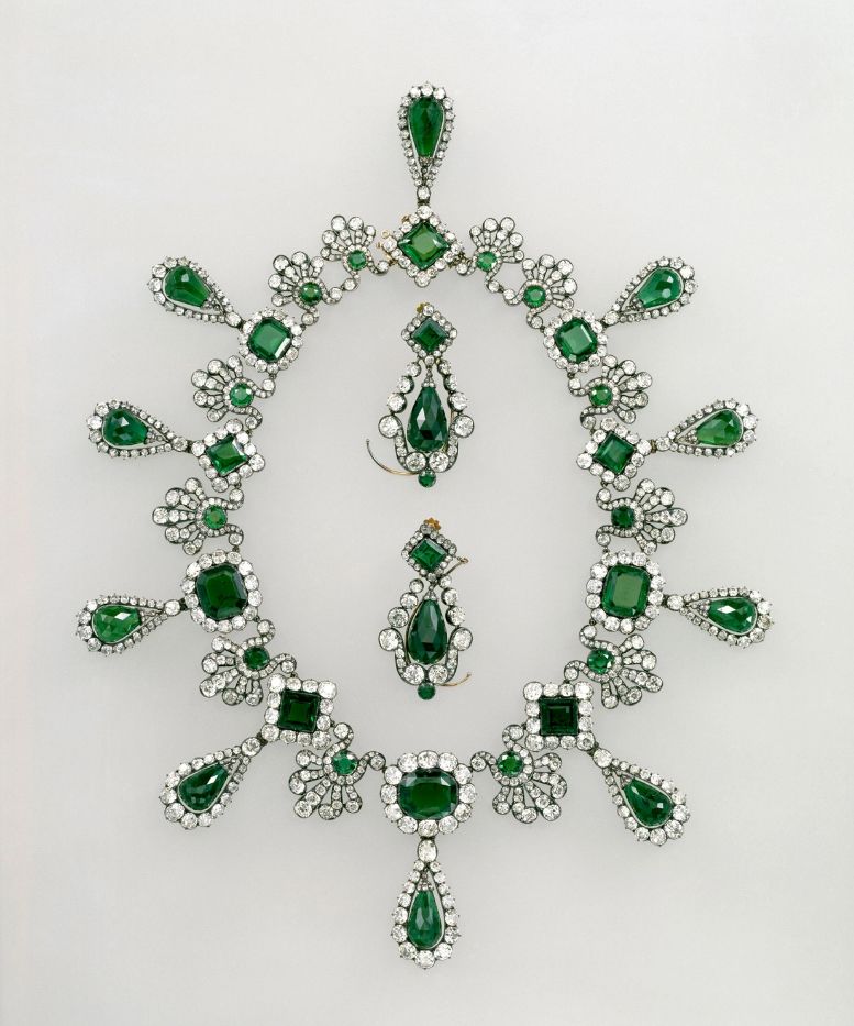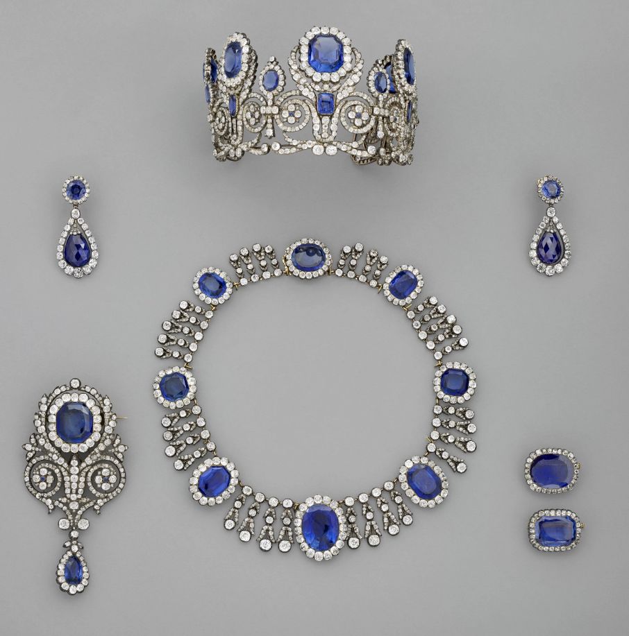 玛丽-阿梅莉王后与奥尔唐斯王后的头饰套件中的冠冕 玛丽-阿梅莉王后与奥尔唐斯王后的蓝宝石套装中的项链 玛丽-阿梅莉王后与奥尔唐斯王后的蓝宝石套装中的耳环 玛丽-路易丝王后的祖母绿套装中的项链 玛丽-路易丝王后的祖母绿套装中的耳环 “圣物匣式胸针” 欧也妮皇后的冠冕 欧也妮皇后的大襟花胸针