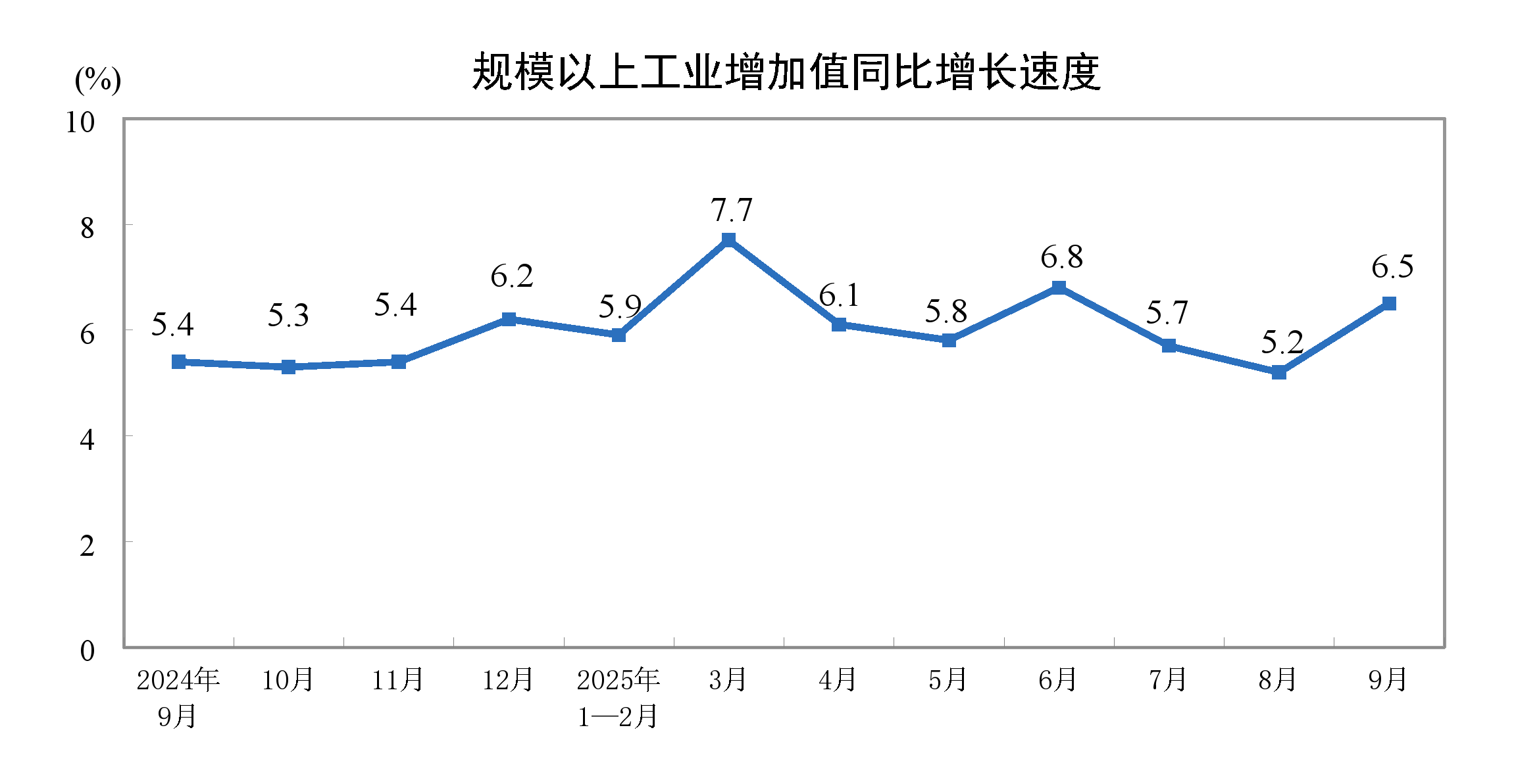 格隆汇10月20日|中国9月规模以上工业增加值同比6.5%,预期5%,前值5.2%。