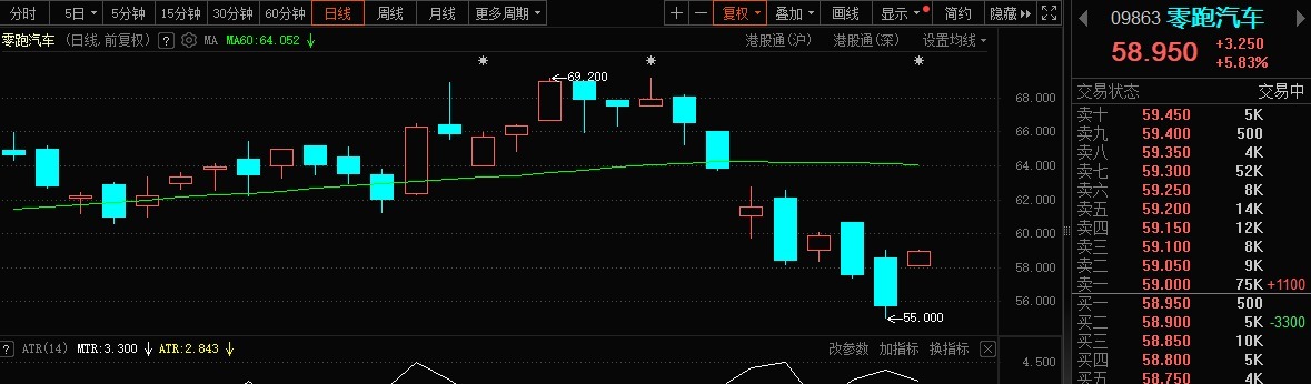 焦点公司方面,零跑汽车(09863.HK)在港交所公告,公司董事长兼首席执行官朱江明及公司股东傅利泉于市场内合共购入324.35万股公司H股,平均价格为每股约63.19港币。在利好刺激下,零跑汽车股价大涨近6%。