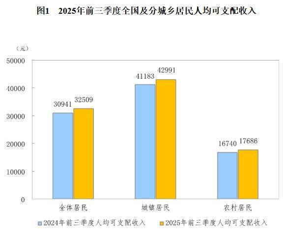 格隆汇10月20日|国家统计局发布数据显示,前三季度,全国居民人均可支配收入32509元,比上年同期名义增长5.1%,扣除价格因素,实际增长5.2%。分城乡看,城镇居民人均可支配收入42991元,增长(以下如无特别说明,均为同比名义增长)4.4%,扣除价格因素,实际增长4.5%;农村居民人均可支配收入17686元,增长5.7%,扣除价格因素,实际增长6.0%。