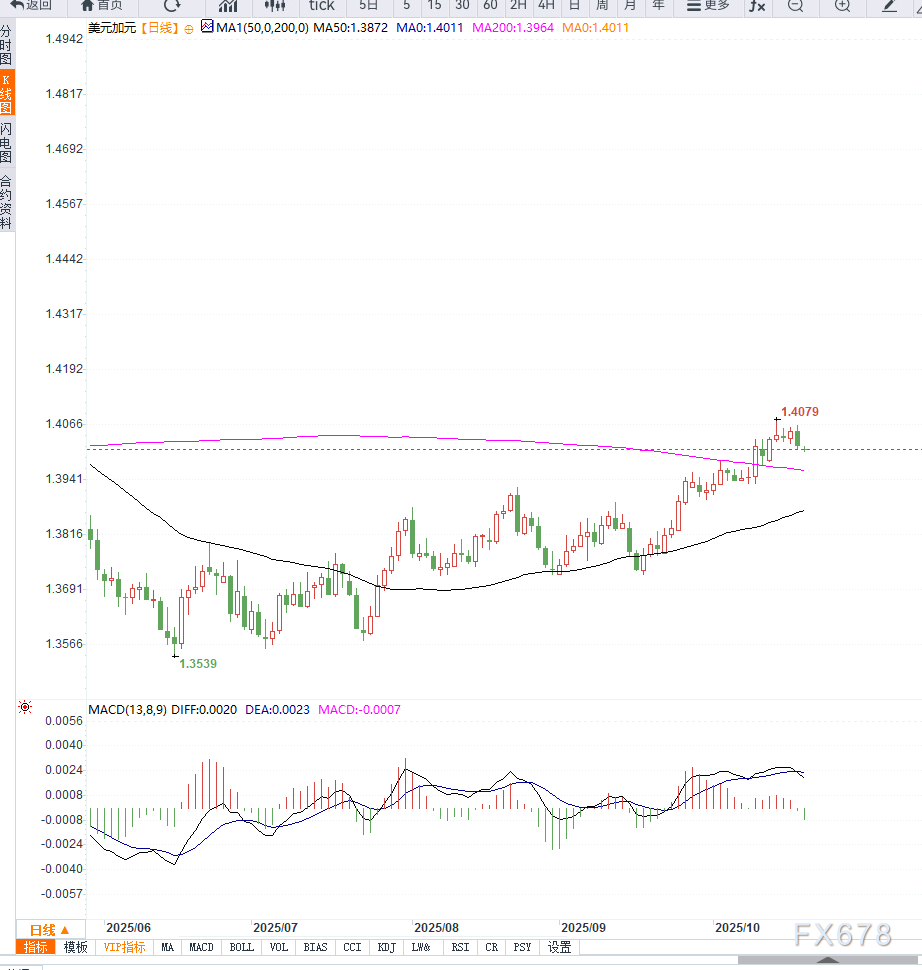 周一亚洲盘,USD/CAD 回落至1.4010附近,延续前一交易日跌势。美元承压的主要原因是美国政府停摆进入第19天,参议院上周四第十次未能通过临时资金法案,使停摆成为现代历史上第三长的事件。 ![]() 商品相关的加元面临油价回落压力。WTI 原油价格收窄前期涨幅,亚洲盘交易在57美元/桶附近。 国际能源机构(IEA)上周报告显示,OPEC+ 产量可能增加,市场供应可能出现过剩,这对油价形成压制,从而限制了加元的进一步贬值。 市场将关注加拿大央行(BoC)当天发布的商业前景调查,以评估经济状况对加元和美元兑加元走势的潜在影响。 日线图显示,USD/CAD 在 1.4050–1.4070区间遇到阻力,多次未能突破,短线存在回调压力。下方支撑位集中在1.4000心理关口及1.3960–1.3950区域。 技术指标显示,相对强弱指数(RSI)已从高位回落,动能减弱,短线可能在1.3950–1.4050区间震荡整理,等待政策与油价方向明确。 ![]() USD/CAD 短线承压,但仍受到全球贸易谈判缓和的支撑。市场关注油价走势和加拿大经济数据对加元的影响,短期维持区间震荡,谨防进一步下行,等待方向选择为主。 |