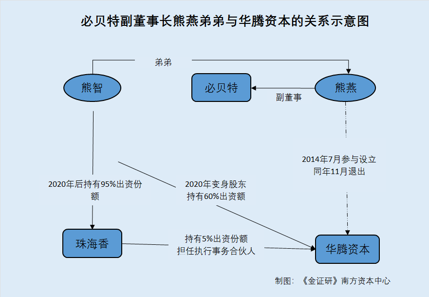 2.6 广州骏腾及华腾资本管理的私募基金,曾与熊燕存共同投资行为 据市场监督管理局数据,广东零度网络科技有限公司(以下简称“零度网络”)2014年报披露,彼时熊燕系零度网络的合伙之一;2015年报披露,深圳市华腾三号投资中心(有限合伙)(以下简称“华腾三号”)系零度网络的股东之一。 而零度网络已于2020年6月24日吊销,截至查询日2025年10月16日处于“吊销,未注销”状态。同时,所披露的主要人员信息中,陈卫东为董事长兼总经理,熊燕、谭石峰、段剑、毛真福为董事,邹子健、谭静茹为监事。 另外,2015年8月,熊燕成为深圳市四季青园林股份有限公司(以下简称“四季青”)的股东,认缴出资额800万元,持股比例为7.4074%。而后2015年12月,广州骏腾、华腾三号、深圳市华腾二号投资中心(有限合伙)(以下简称“华腾二号”)入股四季青。 2015年12月,广州骏腾、华腾三号入股如意情。而后2017年,华腾二号现身为如意情股东。如意情2018年报披露,熊燕系如意情股东之一。 据证券投资基金业协会公开信息,截至查询日2025年10月16日,华腾资本管理的基金包括华腾三号、华腾二号等。 简言之,2015年以来,广州骏腾、华腾资本管理的私募基金曾与熊燕存共同投资的情形。 综上所述,2020年,私募基金管理人华腾资本卷入数千万元合同纠纷,并曾被采取财产保全措施。华腾资本目前处于异常经营状态,旗下存在逾期未清算基金、及长期处于清算状态基金。回溯历史,华腾资本由熊燕2014年7月参与设立,同年11月熊燕即退股。到了2020年,熊智变身为私募公司华腾资本及其执行事务合伙人珠海香蜜的实控人。 而必贝特披露,其副董事长熊燕的弟弟名为熊智,熊智曾在长沙开设秋葵酒类经营部后于2021年注销。而广州骏腾2015年9月由熊燕弟弟熊智参与出资设立并,熊智担任执行事务合伙人。广州骏腾多年来与熊燕担任董事长的企业康盛药业共用联系方式,且所共用电话由康盛药业先行使用。2015-2017年期间,广州骏腾、华腾资本旗下私募基金曾与熊燕先后入股零度网络、四季青、如意情等企业。熊燕、熊智与华腾资本、广州骏腾的关系或值得关注。 三、结语