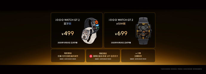 凤凰网科技讯 10月20日,iQOO WATCH GT 2手表发布,该手表搭载屏占比高达82.4%的大屏,峰值亮度2400尼特;支持电竞心率监测、手机游戏心率悬浮窗和复盘,蓝牙版 售价499元,eSIM版售价699元。